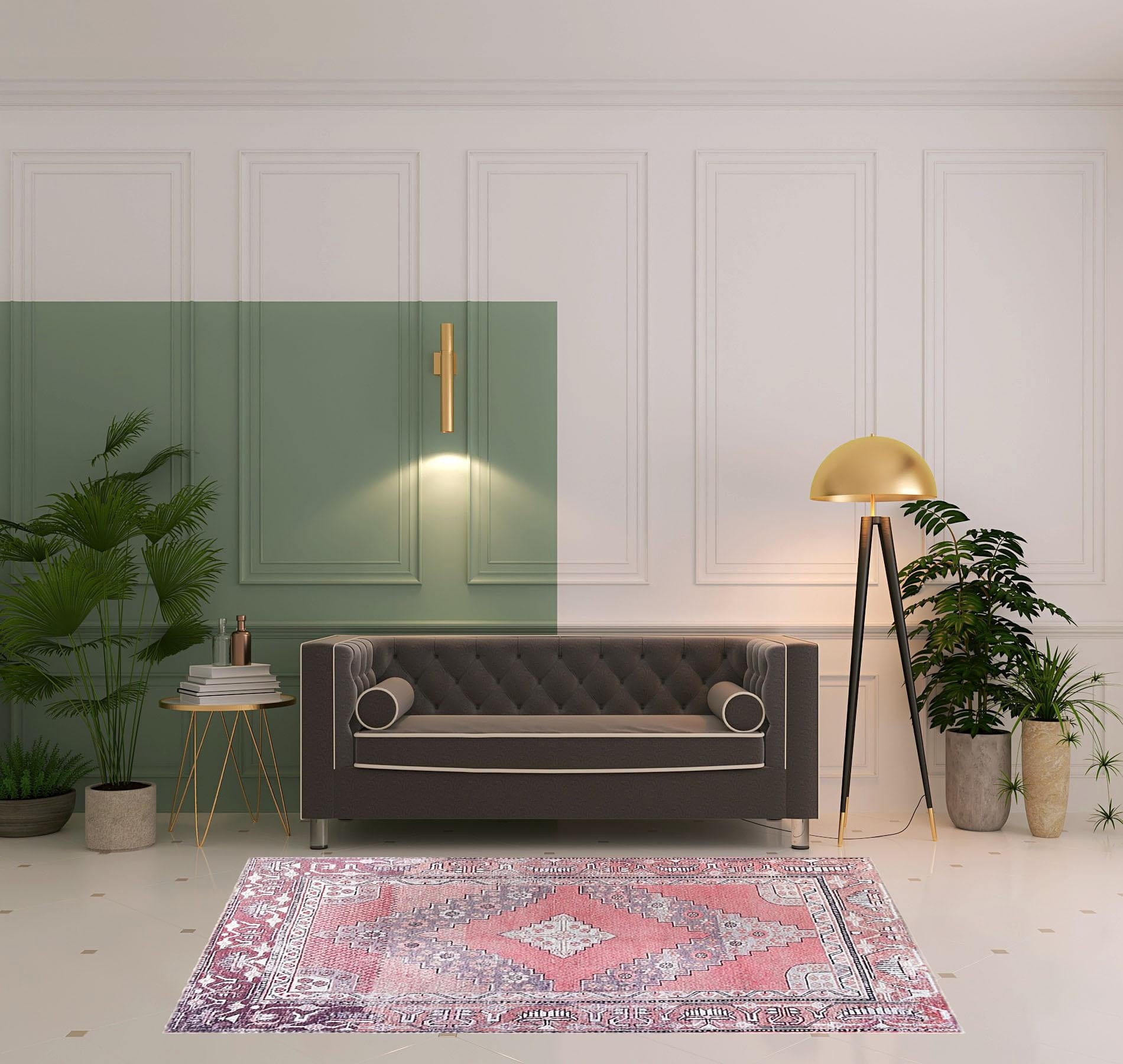 Set an inviting tone in your space with this 5' x 8' pink geometric power loom distressed stain resistant non skid area rug. This rectangle shaped rug features a geometric design in pink to give it visual interest. A classic shape marries with good looking design for your space Made in Turkey, this rug offers high quality combined with good looking designer sensibilities. Ideal for spaces with kids and pets, this rug is stain resistant to help repel stains and spilled liquids. Area Rugs help to give warmth and sense of home to your space. 0.08" H x 60" W x 91.2" D