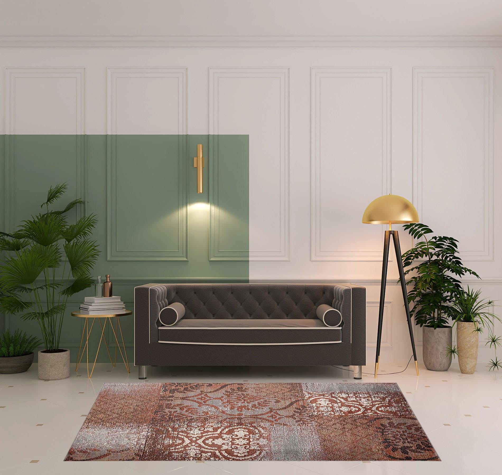 Add great coloration and comfortable texture to your space with this 5' x 8' rust and gray damask distressed stain resistant area rug. This rectangle shaped rug features a damask design in rust and gray to give it visual interest. A classic shape marries with good looking design for your space Ideal for spaces with kids and pets, this rug is stain resistant to help repel stains and spilled liquids. Place this area rug against a hardwood or tile floor and it will enliven your living space with style and sophistication. 0.31" H x 60" W x 96" D
