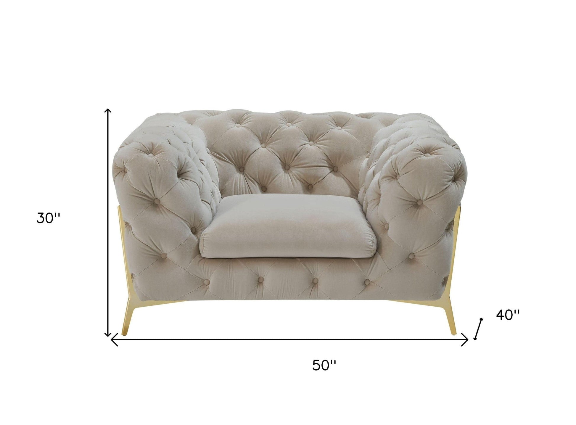 50" Beige Tufted Velvet And Gold Solid Color Lounge Chair