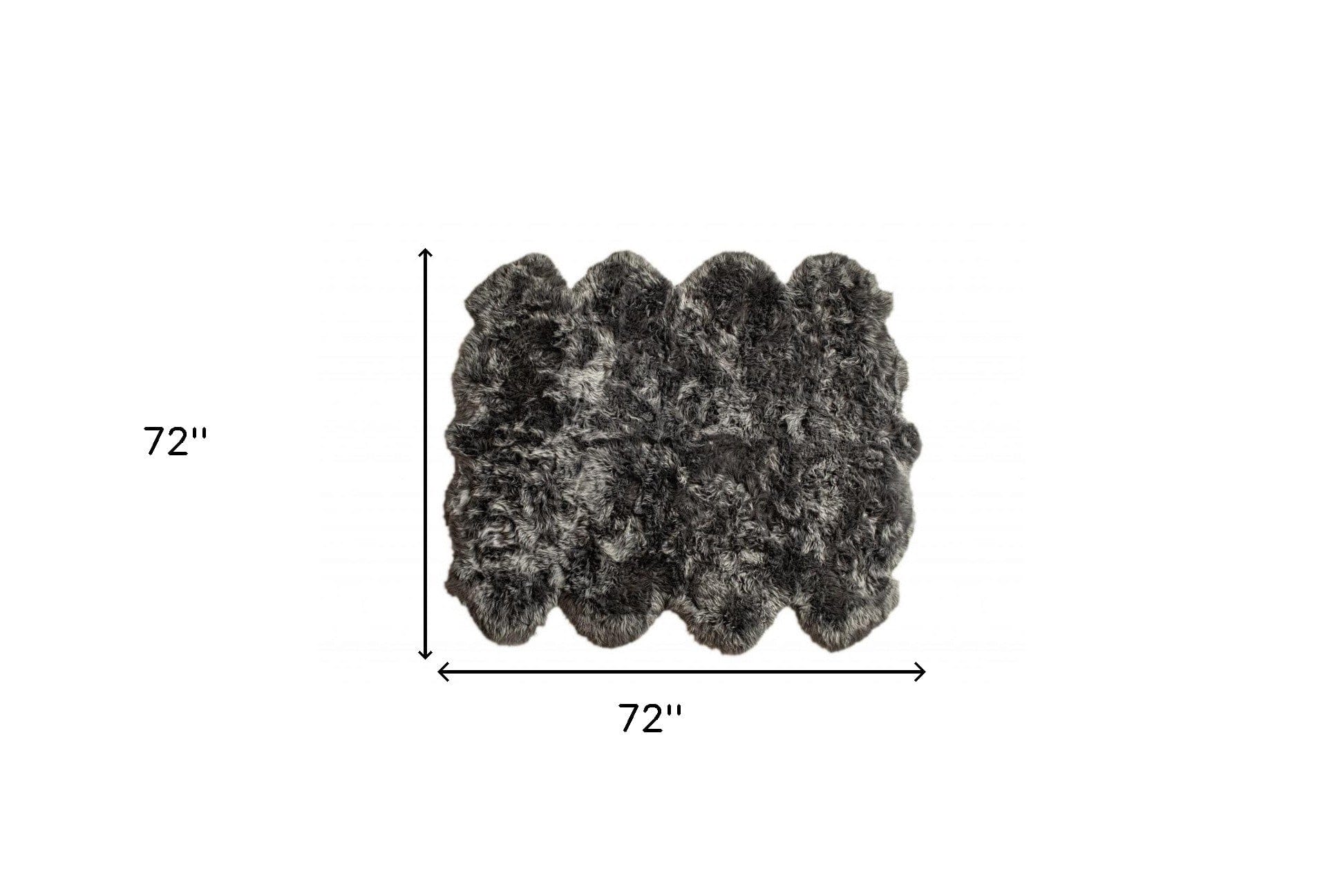 6' X 6' Grey Wool Sheepskin Handmade Area Rug