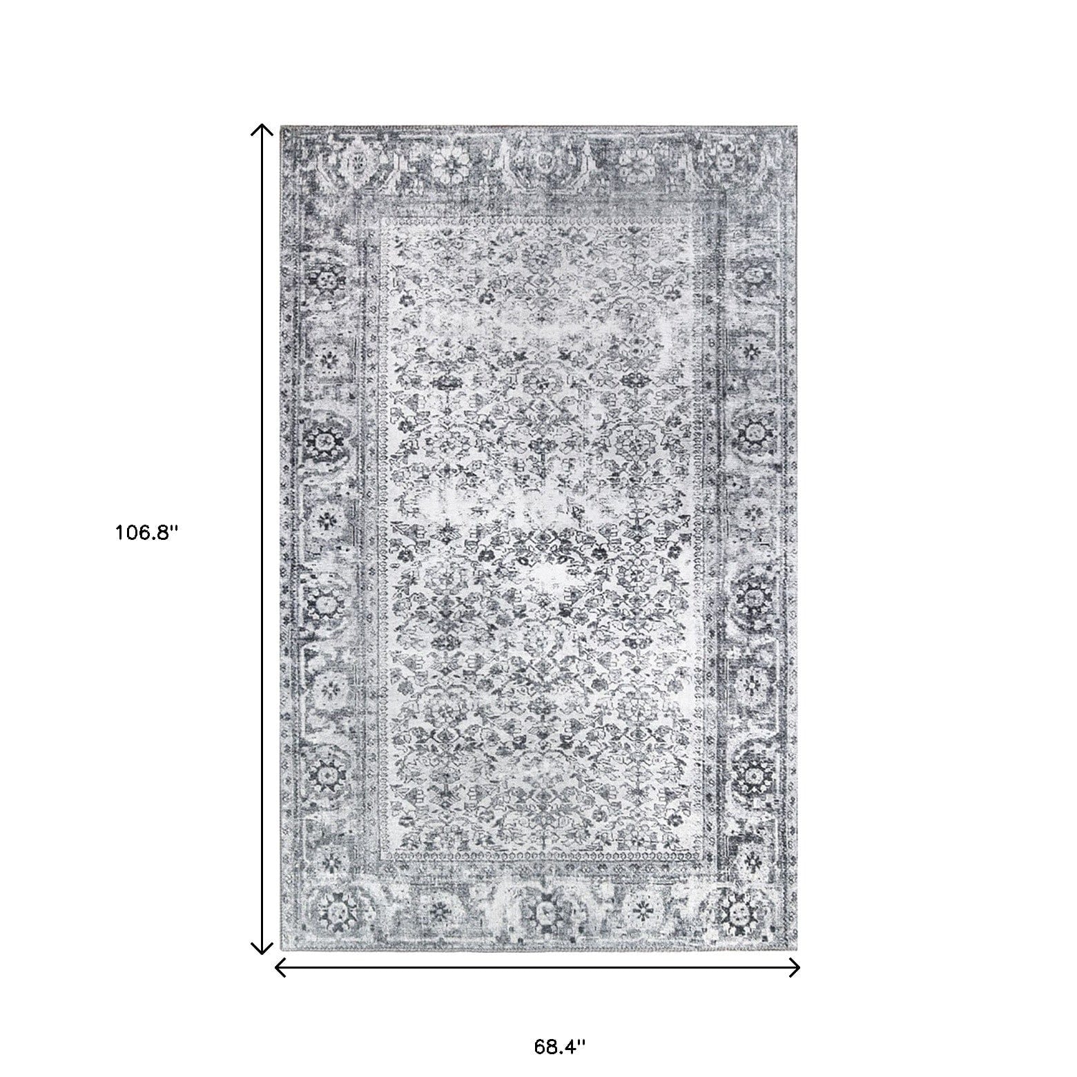 6' X 9' Charcoal Oriental Power Loom Stain Resistant Area Rug