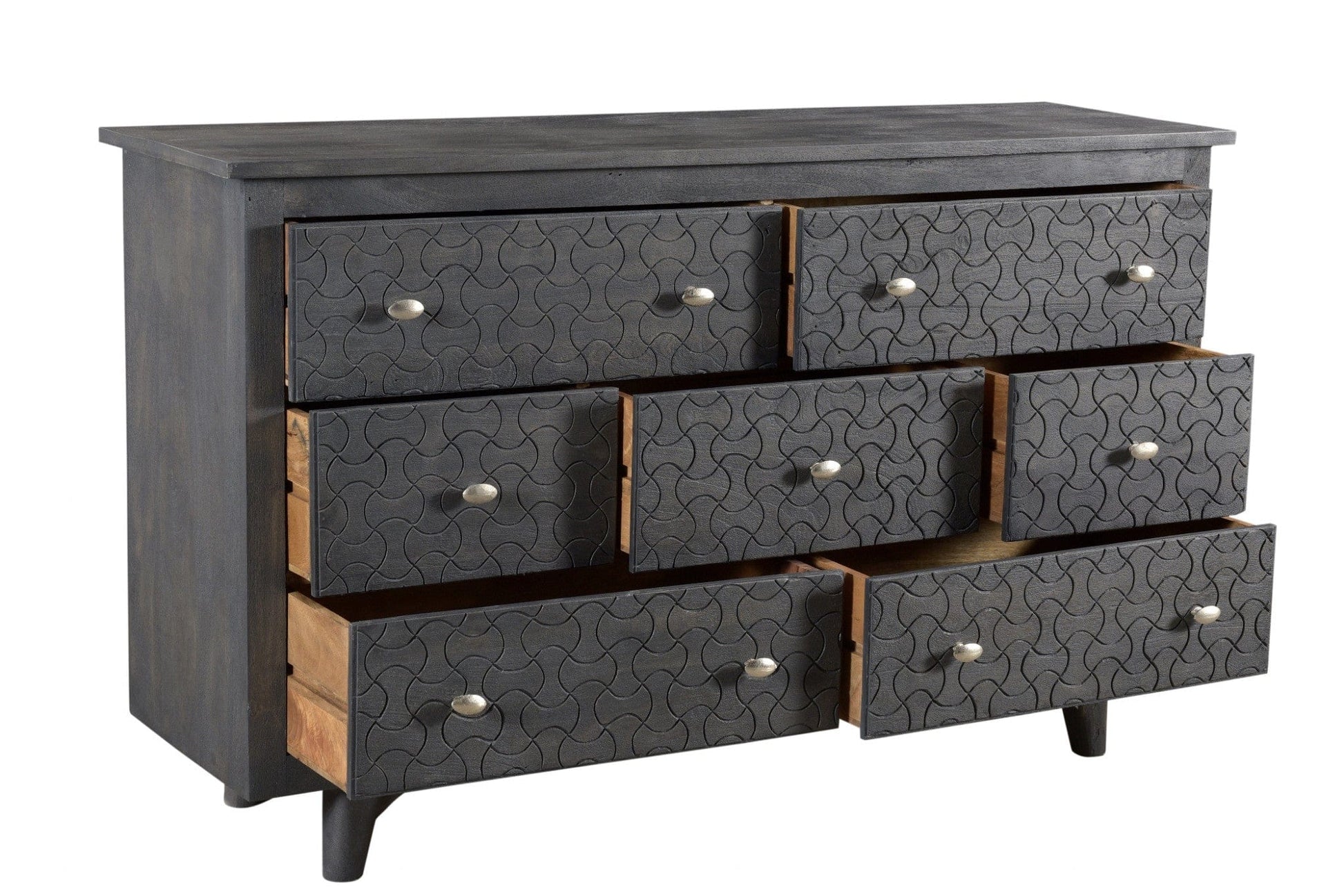 60" Gray Wash Solid Wood Seven Drawer Triple Dresser
