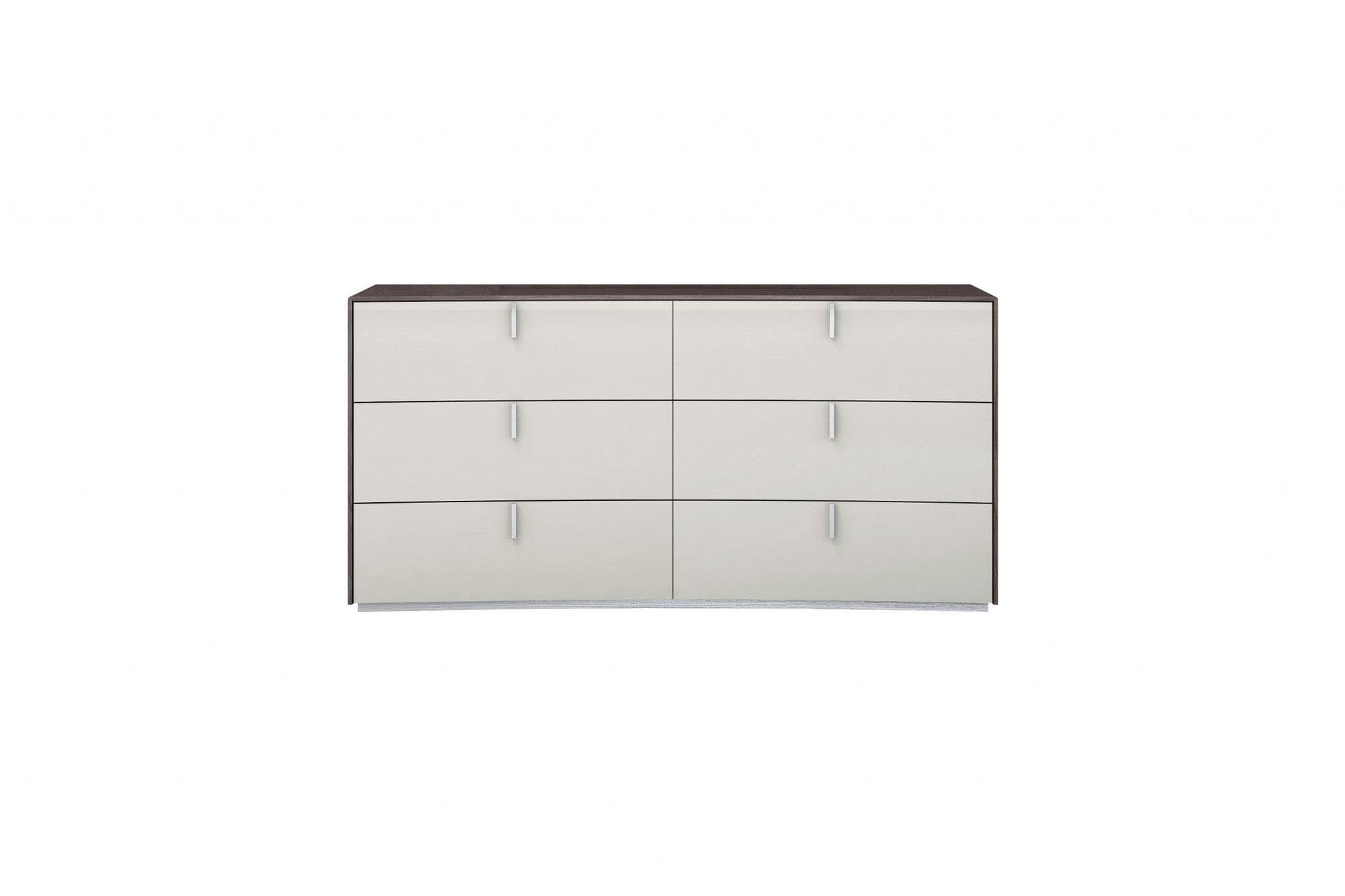 This 62" grey manufactured wood six drawer double dresser is a practical and good looking accent for your bedroom storage and organizational needs. This horizontal double dresser has column style drawers and a wide top surface area to help you with your daily dressing essentials. Loaded with capacity, this piece is equipped with six easy open drawers for practical and good looking clothing storage. Its a high quality piece, made from high grade manufactured wood. 30" H x 62" W x 21" D