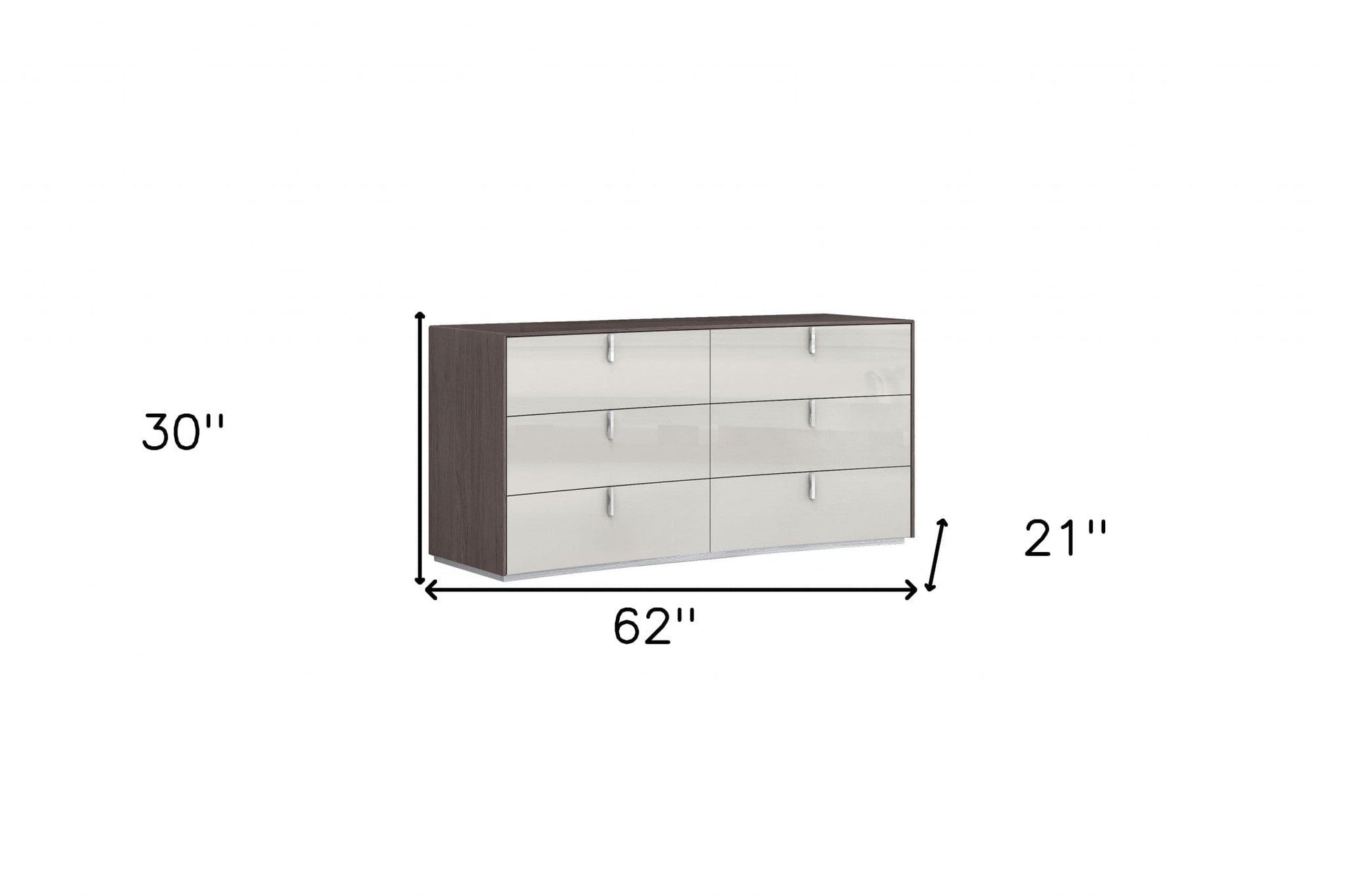 62" Grey Manufactured Wood Six Drawer Double Dresser