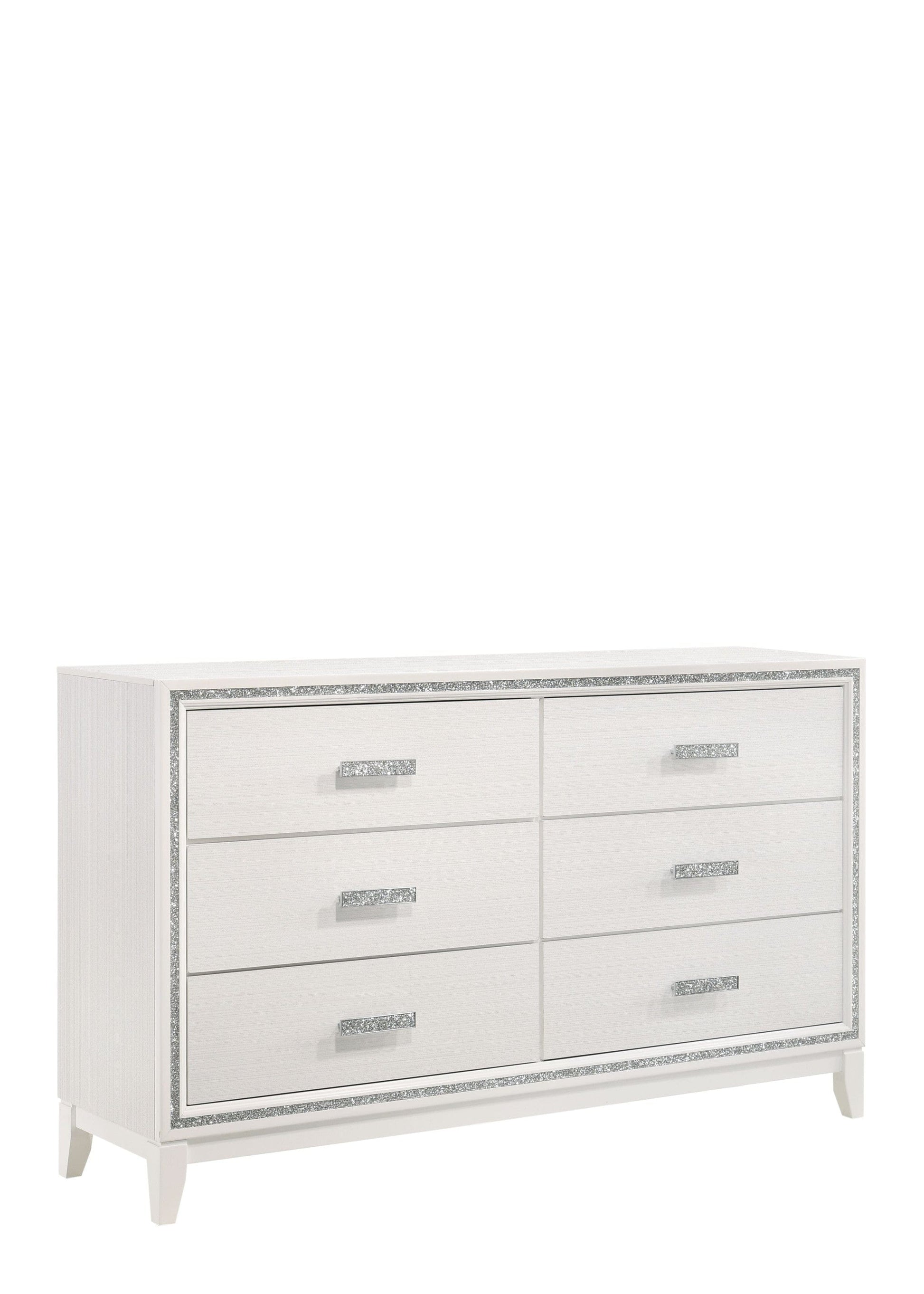 63" White Finish Manufactured Wood Six Drawer Standard Dresser