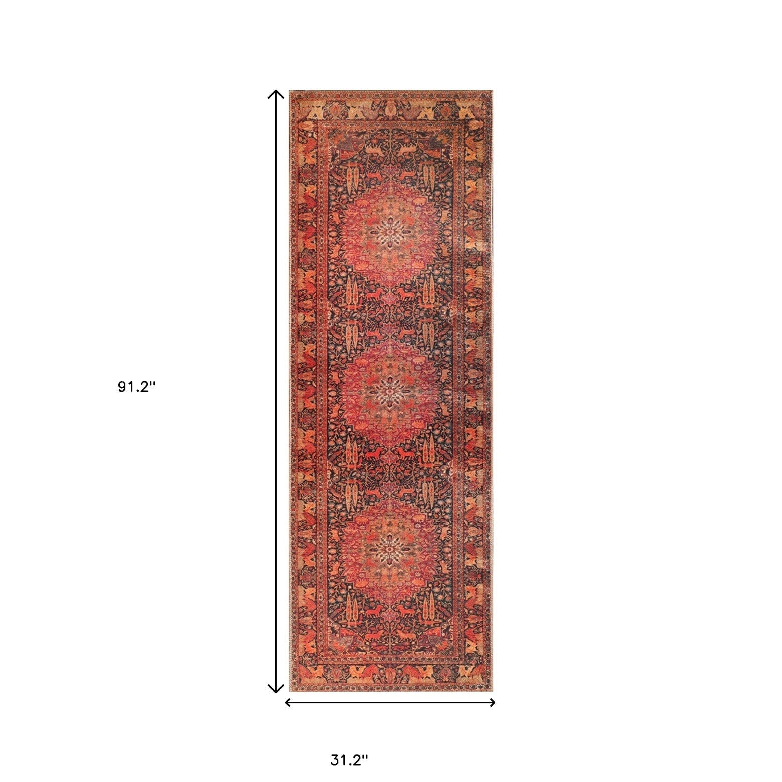This 7' brown medallion stain resistant runner rug, is a great way to add warmth to a room. This runner shaped rug features a medallion design in brown to give it visual interest. A classic shape marries with good looking design for your space Ideal for spaces with kids and pets, this rug is stain resistant to help repel stains and spilled liquids. Place this area rug against a hardwood or tile floor and it will enliven your living space with style and sophistication. 0.08" H x 31.2" W x 91.2" D