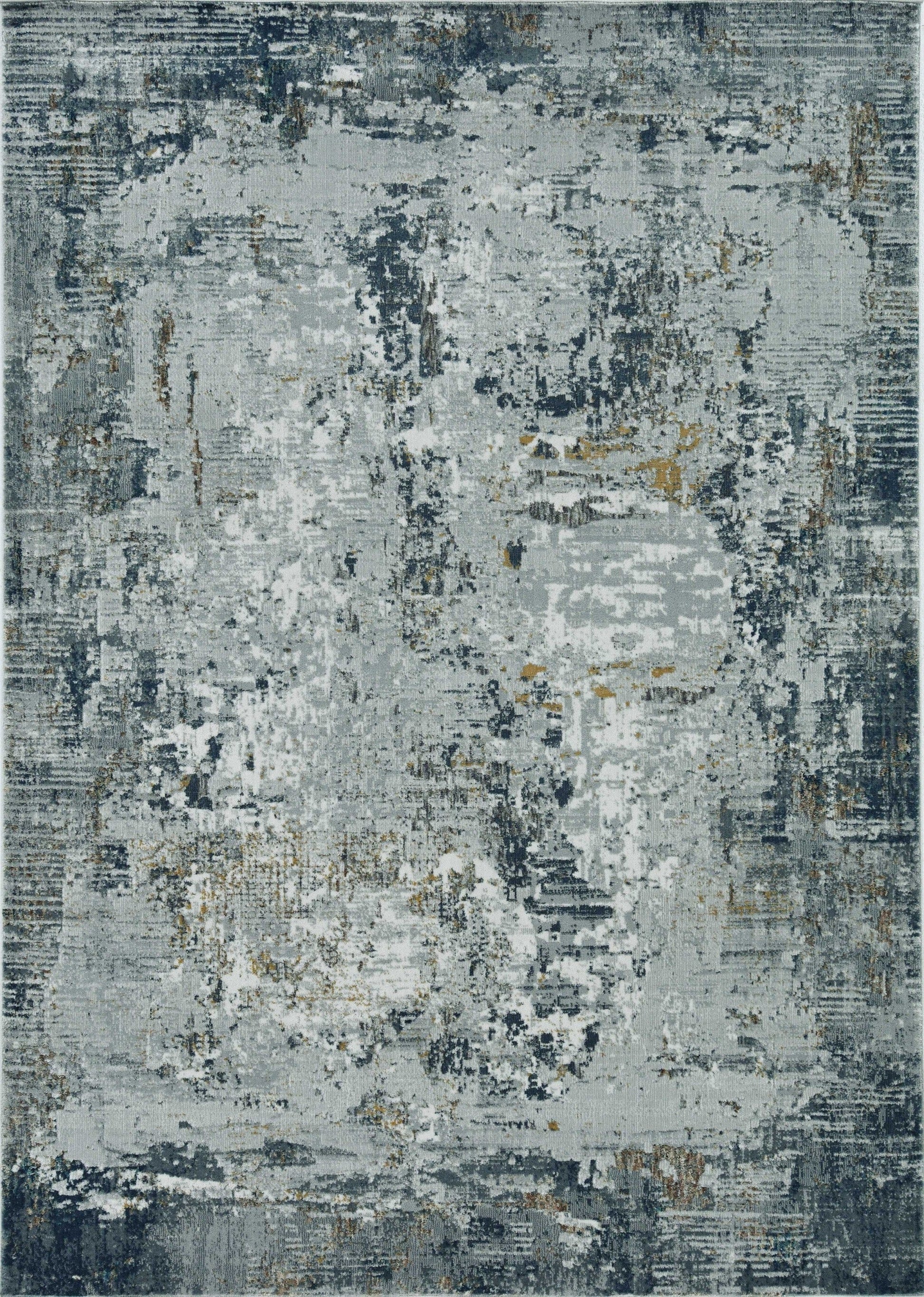 This 26" x 83" grey luminary runner rug is machine woven of abstract traditional with pops of metallic. These unique designs are sure to make a statement no matter what room they are in! It has a 1/4" pile height and is made in Turkey of polypropylene with shrink polyester. Machine-woven of polypropylene and polyester with no backing. Vacuum regularly & spot clean stains. Professional cleaning recommended periodically.