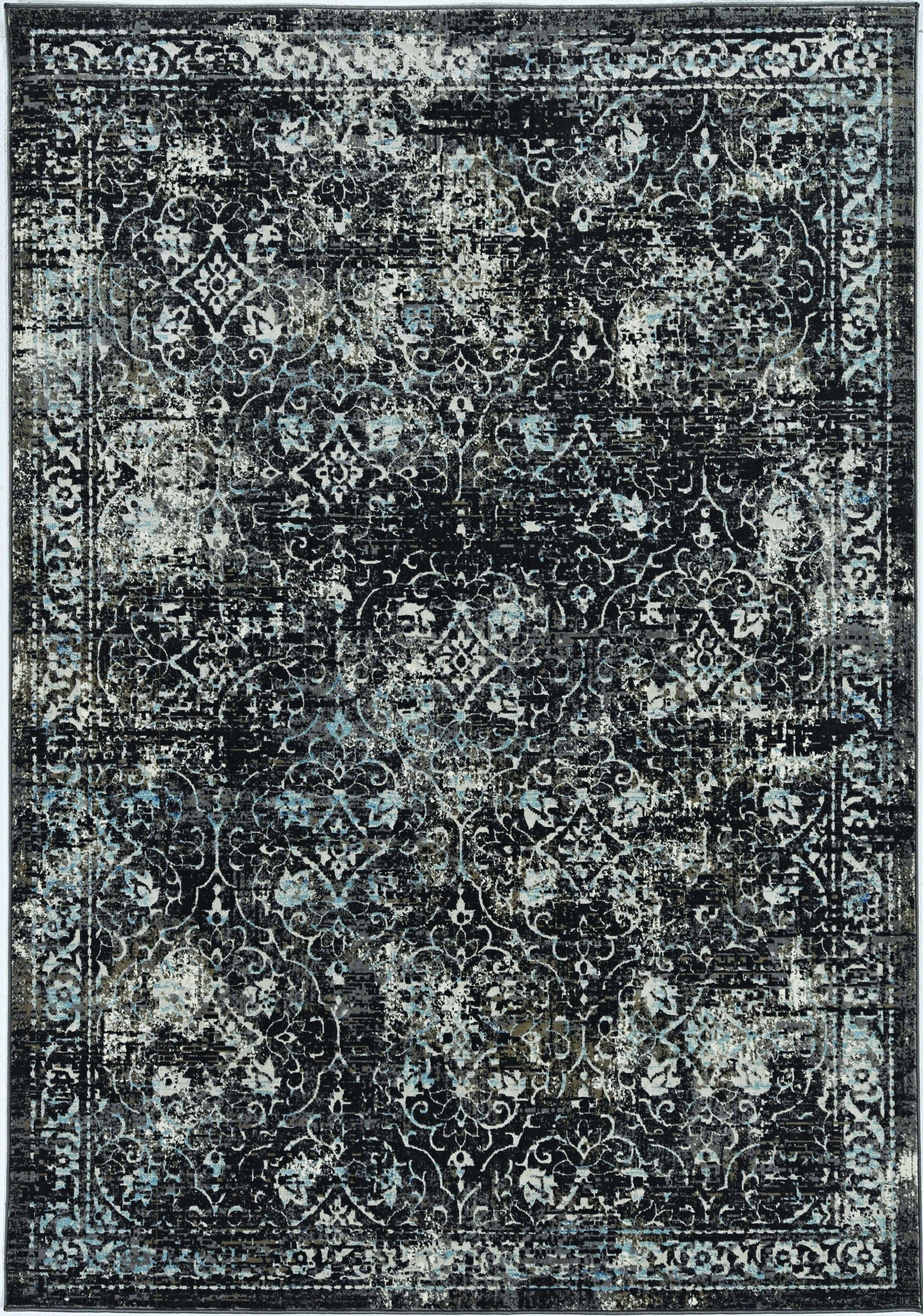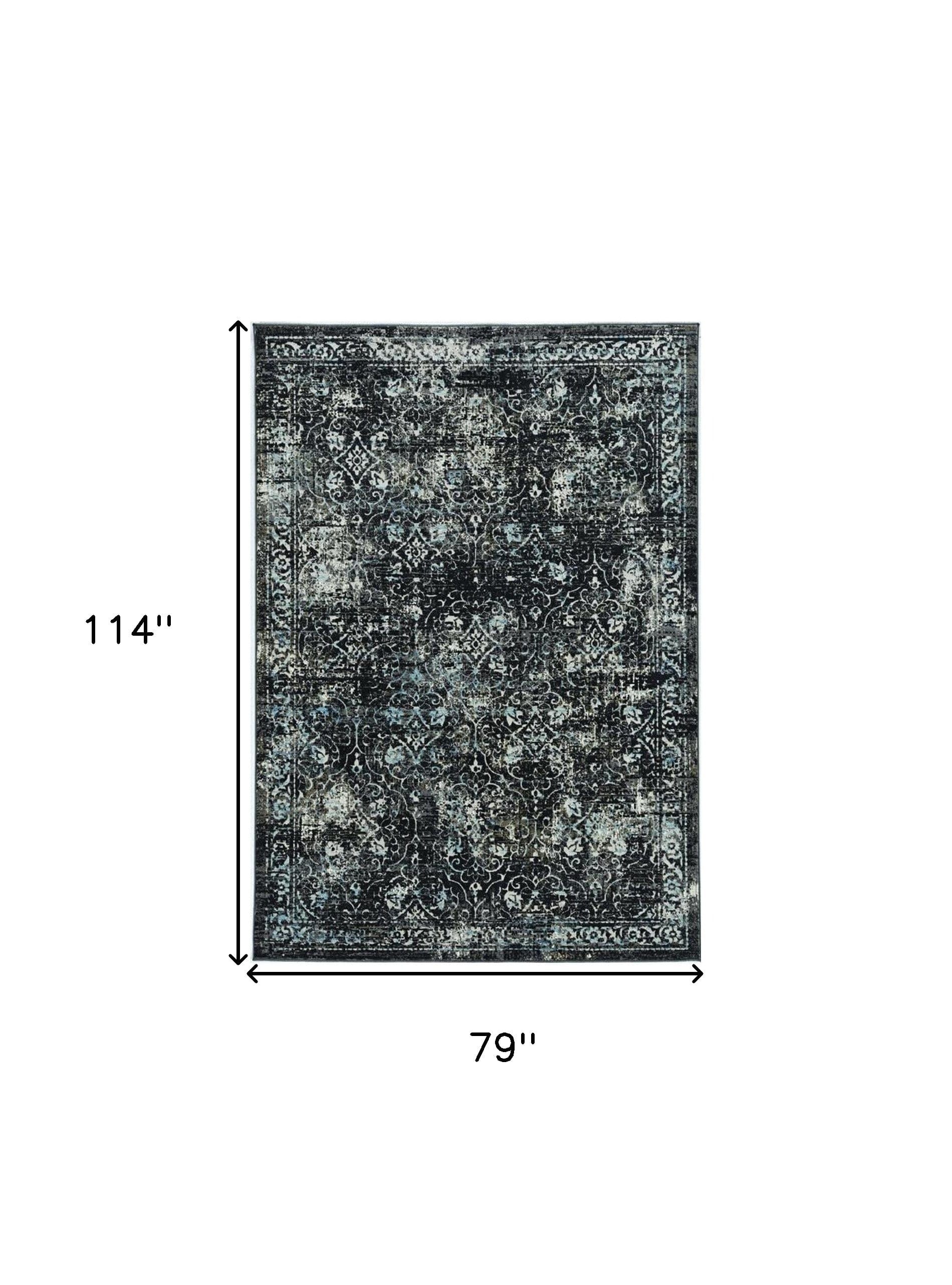 7' Midnight Black Machine Woven Vintage Traditional Indoor Runner Rug
