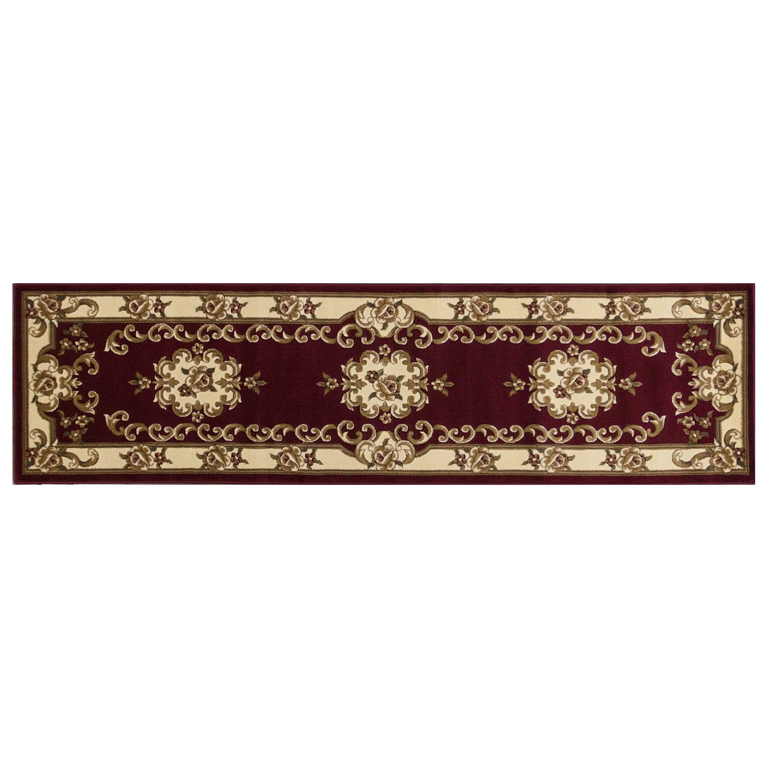 Adorn your home with this bewitching red/ivory aubusson rug, which will turn your floor into art. Its a beguiling piece, which will certanly spruce up the ambiance of your home and get rid of monotony. This rug is a hard wearing piece machine-woven in China of 100% heat-set polypropylene and hand-carved with specific attention to detail. Its part of the Thinco collection, and its beautiful blend of yesterday and today will give an appealing modern feel to the look and feel of your home. As for measurements, they are 1" for height, 91" for width, and 130" for depth. To care for it, vaccum it regularly and spot clean any stains. Its also recommended that you have it professionally cleaned ocassionally. If you want a beautiful and useful rug that can fit in well with any interior, this is the one for you.