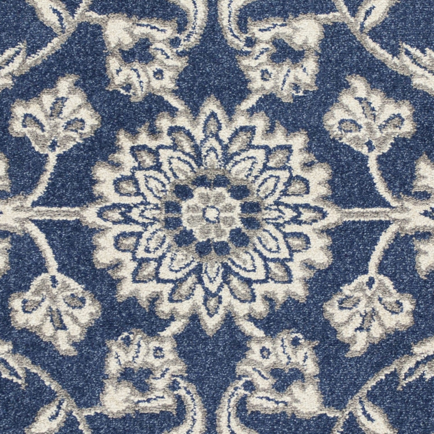7' X 9' Denim Floral Vine Uv Treated Indoor Area Rug