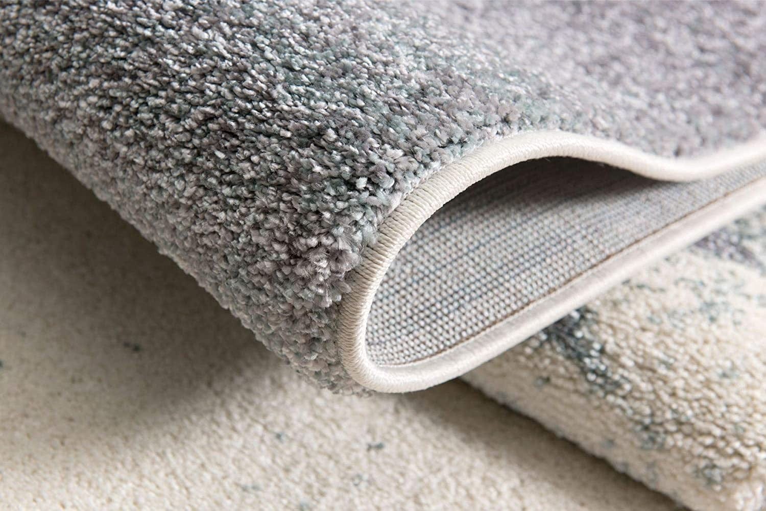 Emphasizing nothing less than a piece of art on the floor, this White and Blue Abstract Strokes Area Rug will not only spruce up your living space but also be an exclusive accent on its own. The skillful brush strokes of peacock blue and dove gray on a grainy white base depict abstract art on a canvas creating visual interest. Boasting the finest craftsmanship of Turkish artisans, this rug is made of 100% twisted polypropylene to withstand heavy traffic with low maintenance while resisting stains and spillage. Made to stay put on the floors without any creases and wrinkles while ensuring a soft and sumptuous underfoot due to its high pile construction. Whether you lean towards complement or contrast, this stunning area rug will make a statement on both bold or light-colored floors. 112” x 78” x 0.8”