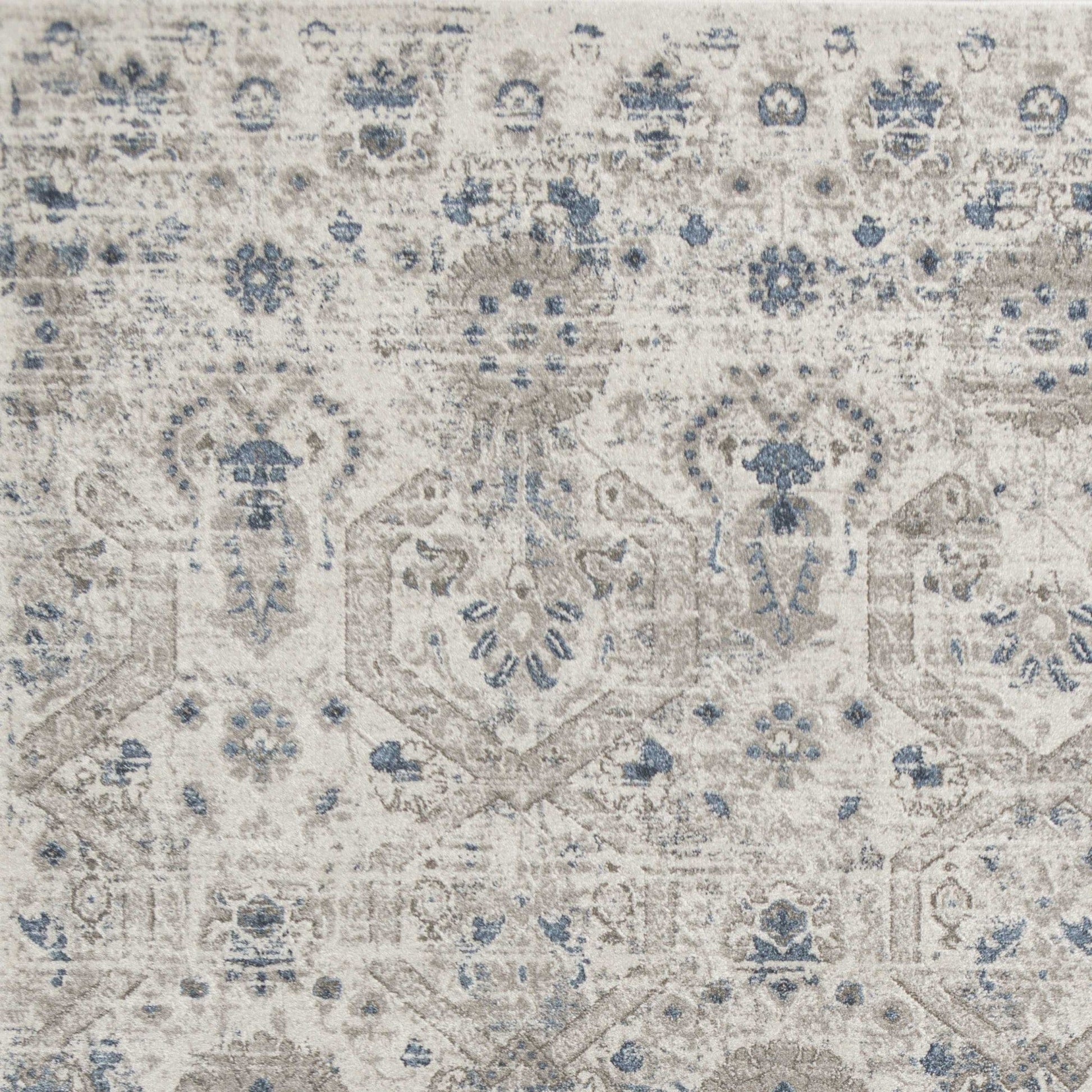 Explore our take on an updated traditional look with this rug. Trendy colors against vintage traditional patterns make this rug enticing across all lifestyles and generations. Machine-woven in Turkey of 100% heat-set polypropylene frisee yarn, this brings a plush pile of 1/2 to your floors. Machine-woven of polypropylene frisee yarn with no backing. Made in Turkey. Vacuum regularly & spot clean stains. Professional cleaning recommended periodically.