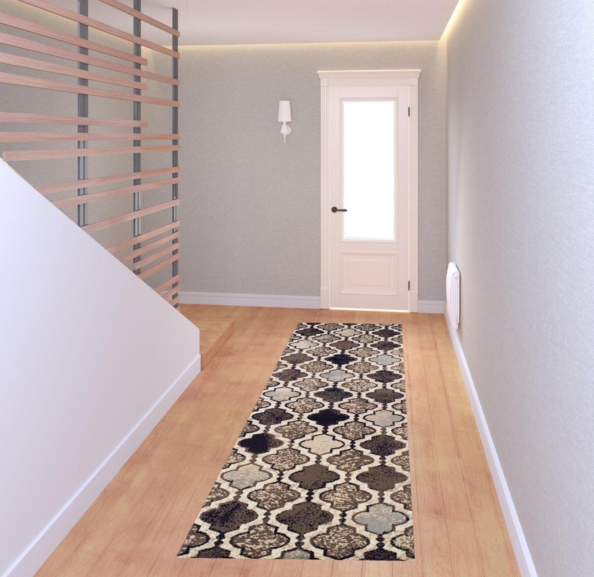 Add great coloration and comfortable texture to your space with this 8' ivory quatrefoil power loom distressed stain resistant runner rug. This runner shaped rug features a quatrefoil design in ivory to give it visual interest. A classic shape marries with good looking design for your space The coloring of this rug adds a delightfully neutral tone to your home and will easily match with most any decor. This superior Turkish rug represents the highest quality and is built to last. Ideal for spaces with kids and pets, this rug is stain resistant to help repel stains and spilled liquids. Area Rugs help to give warmth and sense of home to your space. 0.31" H x 32.4" W x 96" D