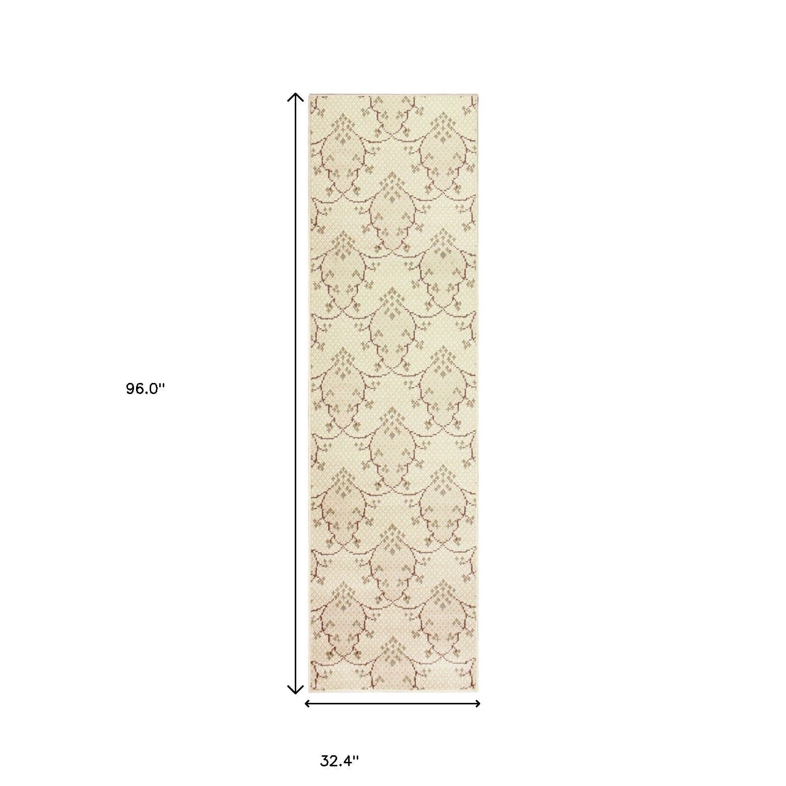 8' Runner Beige Green And Brown Floral Stain Resistant Runner Rug