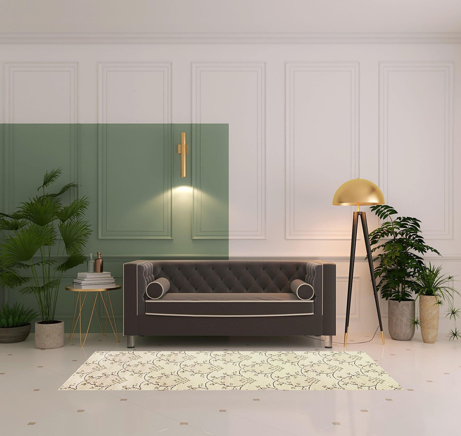 Add some artistry to your room with this 8' beige green and brown floral stain resistant runner rug. The clean-lined floral blocks in beige green and brown with a distressed finish to be an eye-catching element on the floor. Ideal for spaces with kids and pets, this rug is stain resistant to help repel stains and spilled liquids. Place this area rug against a hardwood or tile floor and it will enliven your living space with style and sophistication. 0.31" H x 32.4" W x 96" D