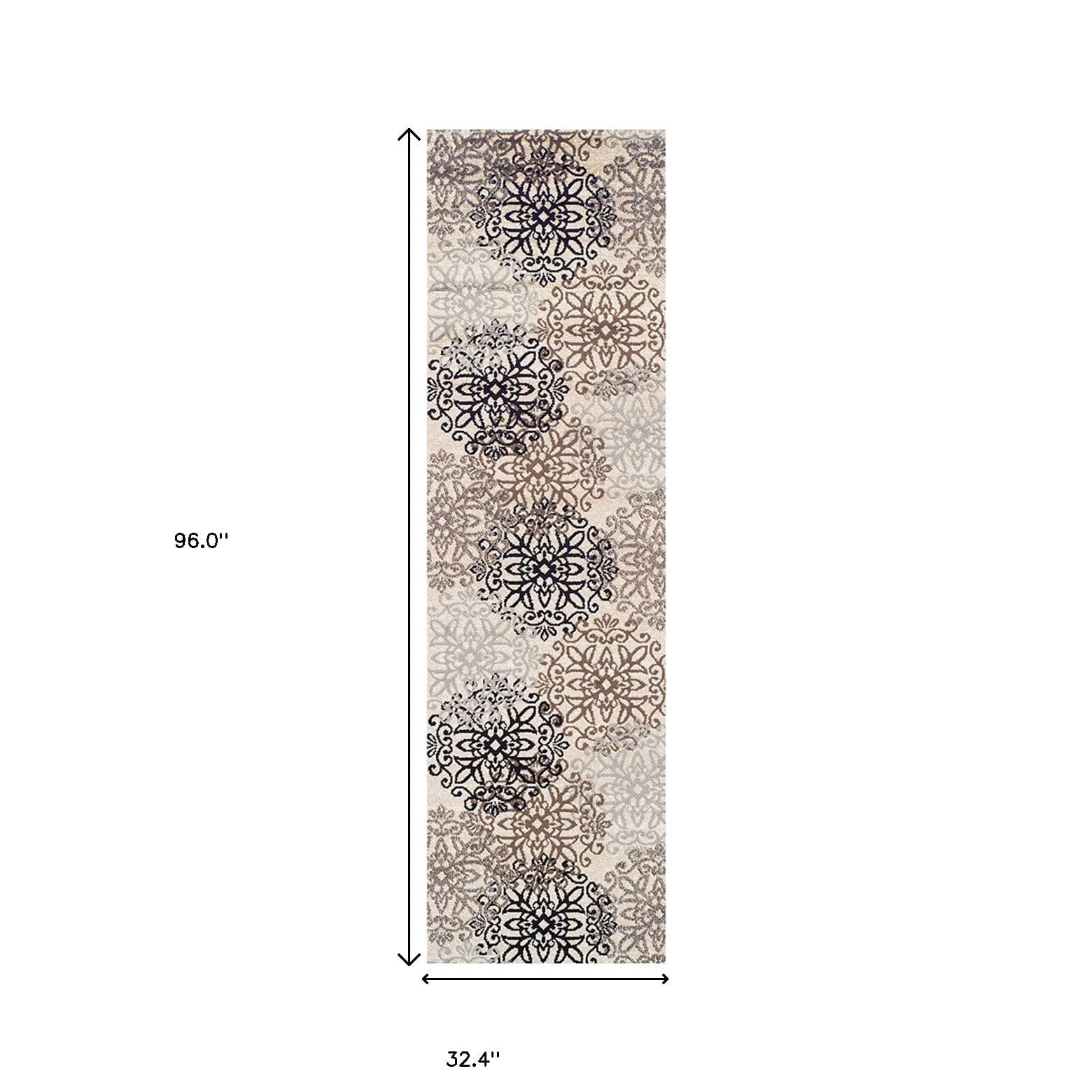 8' Tan Gray And Black Floral Medallion Stain Resistant Runner Rug