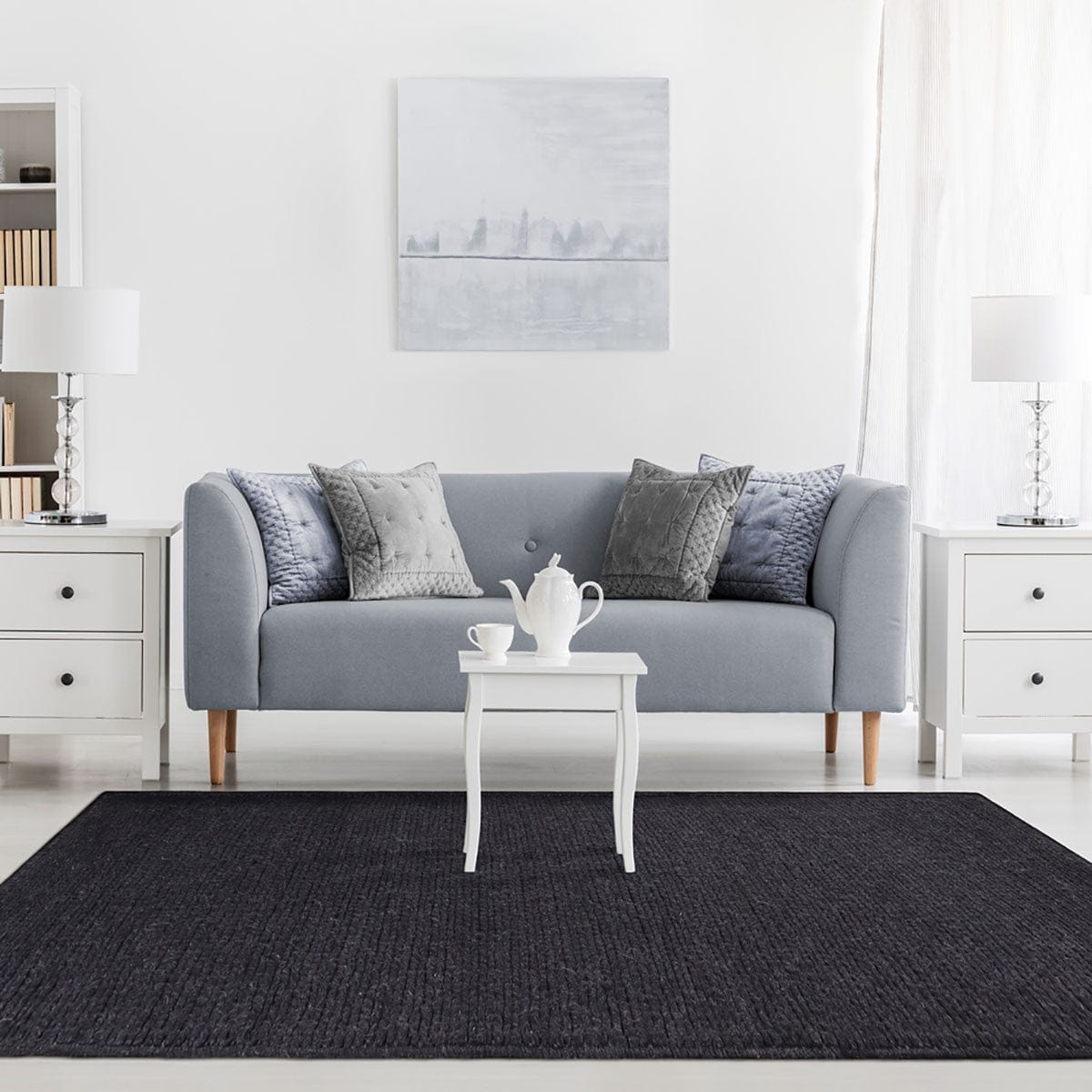 Add great coloration and comfortable texture to your space with this 8' x 10' black wool handmade stain resistant area rug. This rectangle shaped rug flaunts a black color that will be a great way to accent your space. Solid colors are versatile and will blend with any existing decor style. The coloration of this rug infuses an updated and modern vibe into your space. Ideal for spaces with kids and pets, this rug is stain resistant to help repel stains and spilled liquids. Area Rugs help to give warmth and sense of home to your space. 0.31" H x 96" W x 120" D