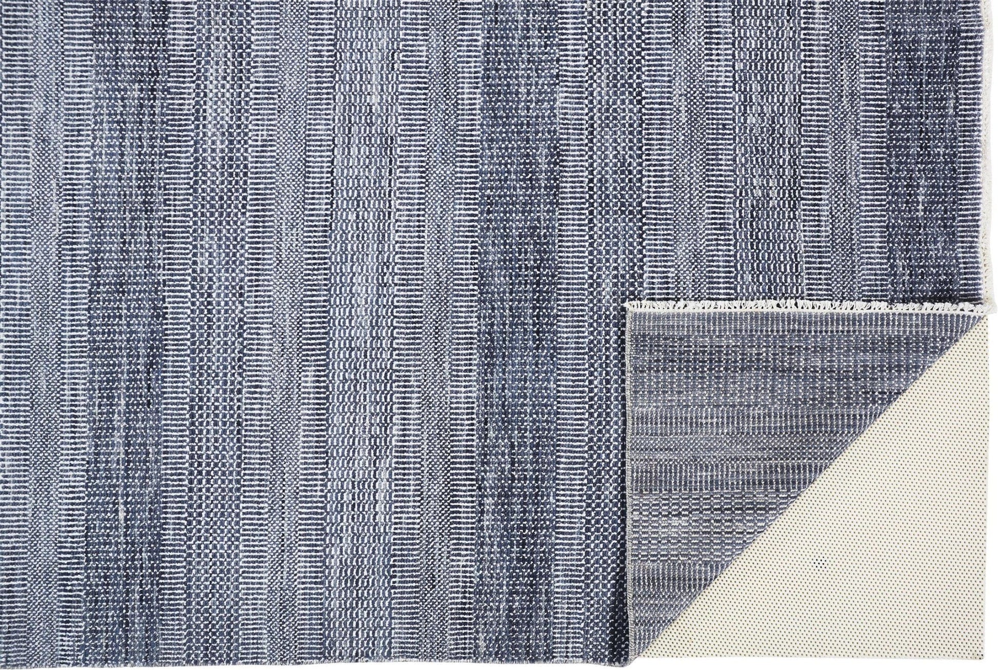 This 8' x 10' blue and gray wool striped hand knotted area rug, is a great way to add warmth to a room. This rectangle shaped rug features a striped design in blue and gray to give it visual interest. A classic shape marries with good looking design for your space Crafted by skilled artisans, this hand knotted rug is genuine and unique. No two will be exactly alike. Area Rugs help to give warmth and sense of home to your space. 1" H x 93" W x 117" D