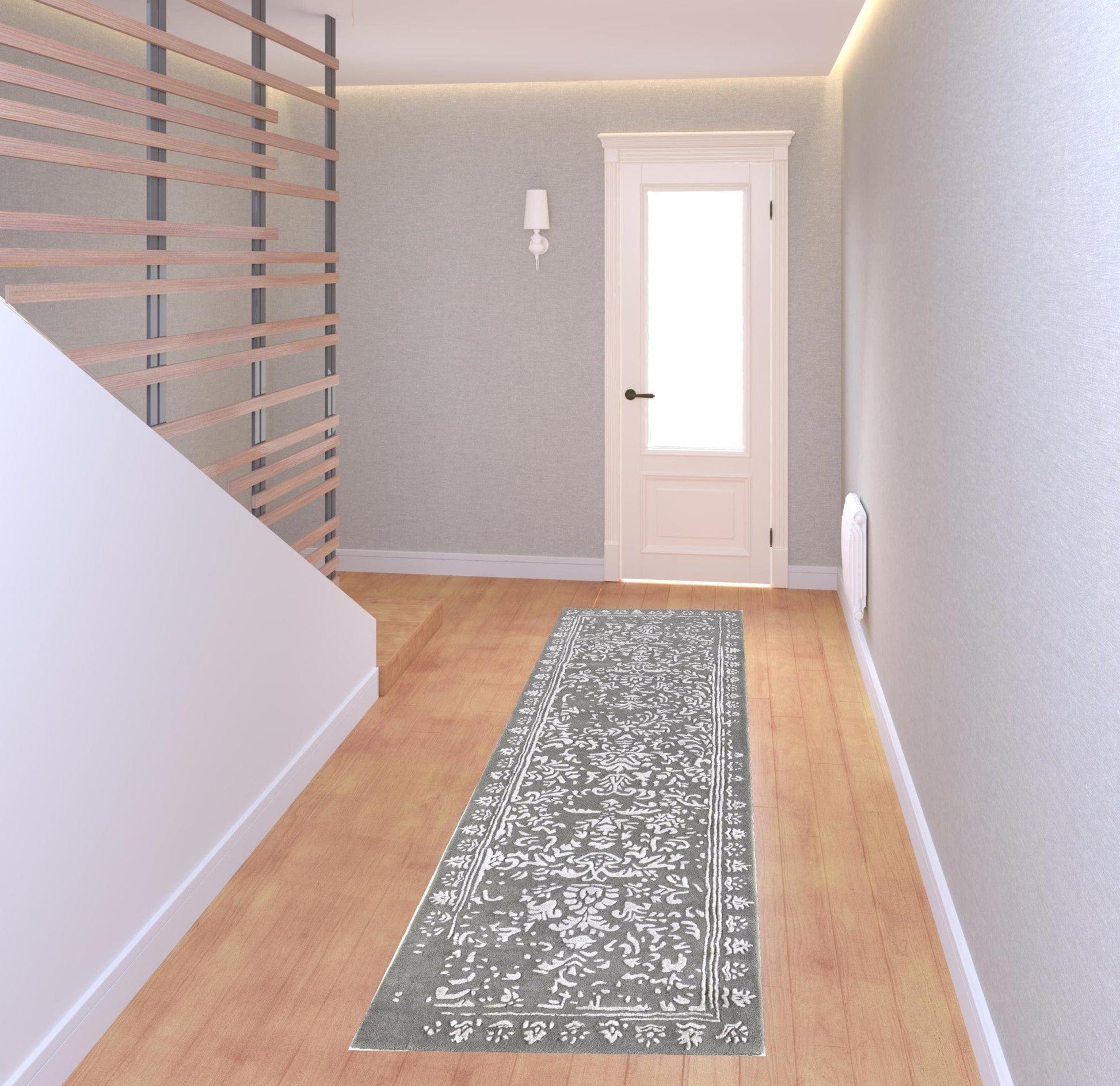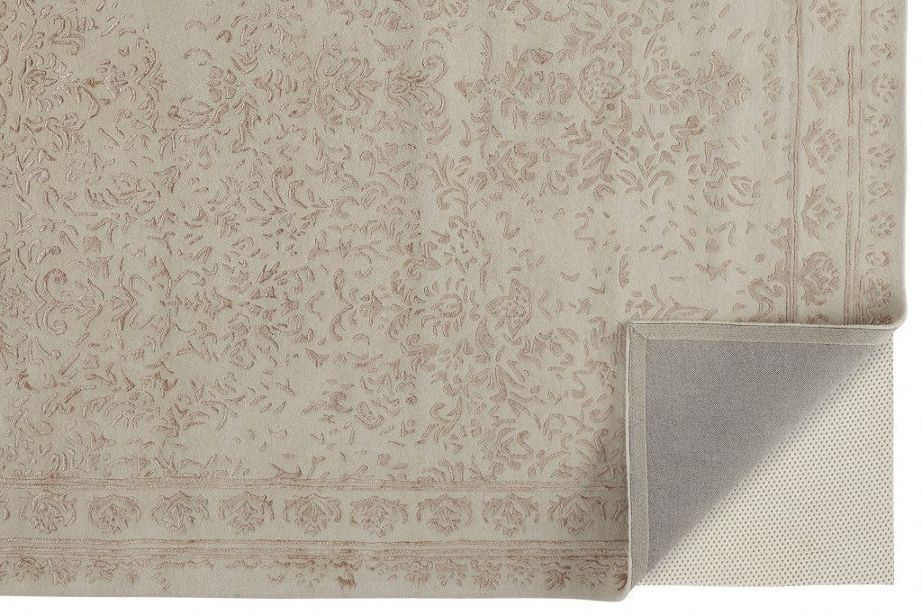 This 8' x 10' blue and silver wool floral tufted handmade distressed area rug, is a great way to add warmth to a room. This rectangle shaped rug features a floral design in blue and silver to give it visual interest. A classic shape marries with good looking design for your space Place this area rug against a hardwood or tile floor and it will enliven your living space with style and sophistication. 0.31" H x 96" W x 120" D