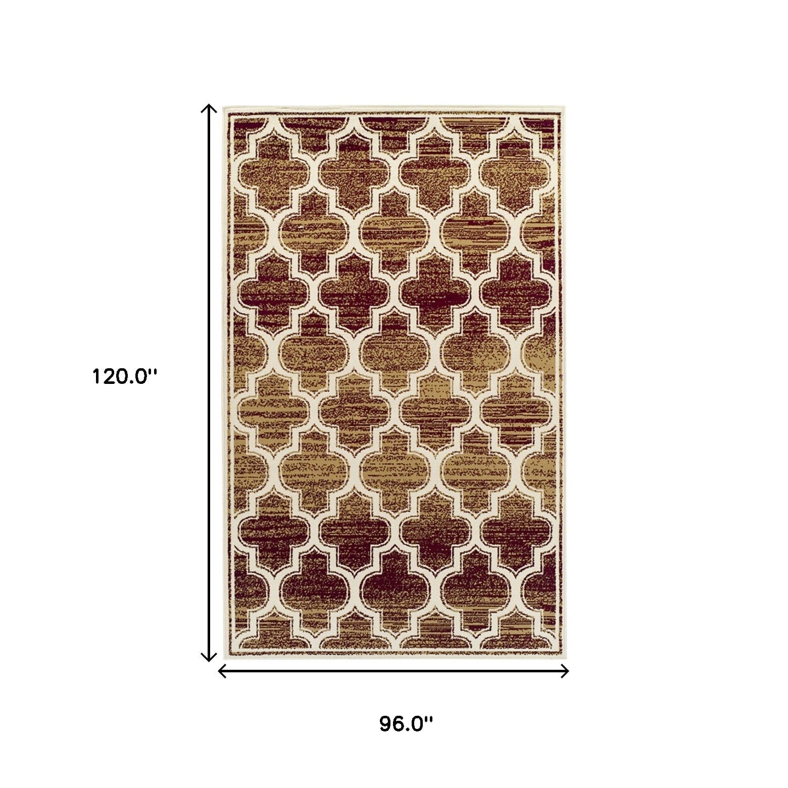 8' X 10' Brick And Gold Geometric Stain Resistant Area Rug
