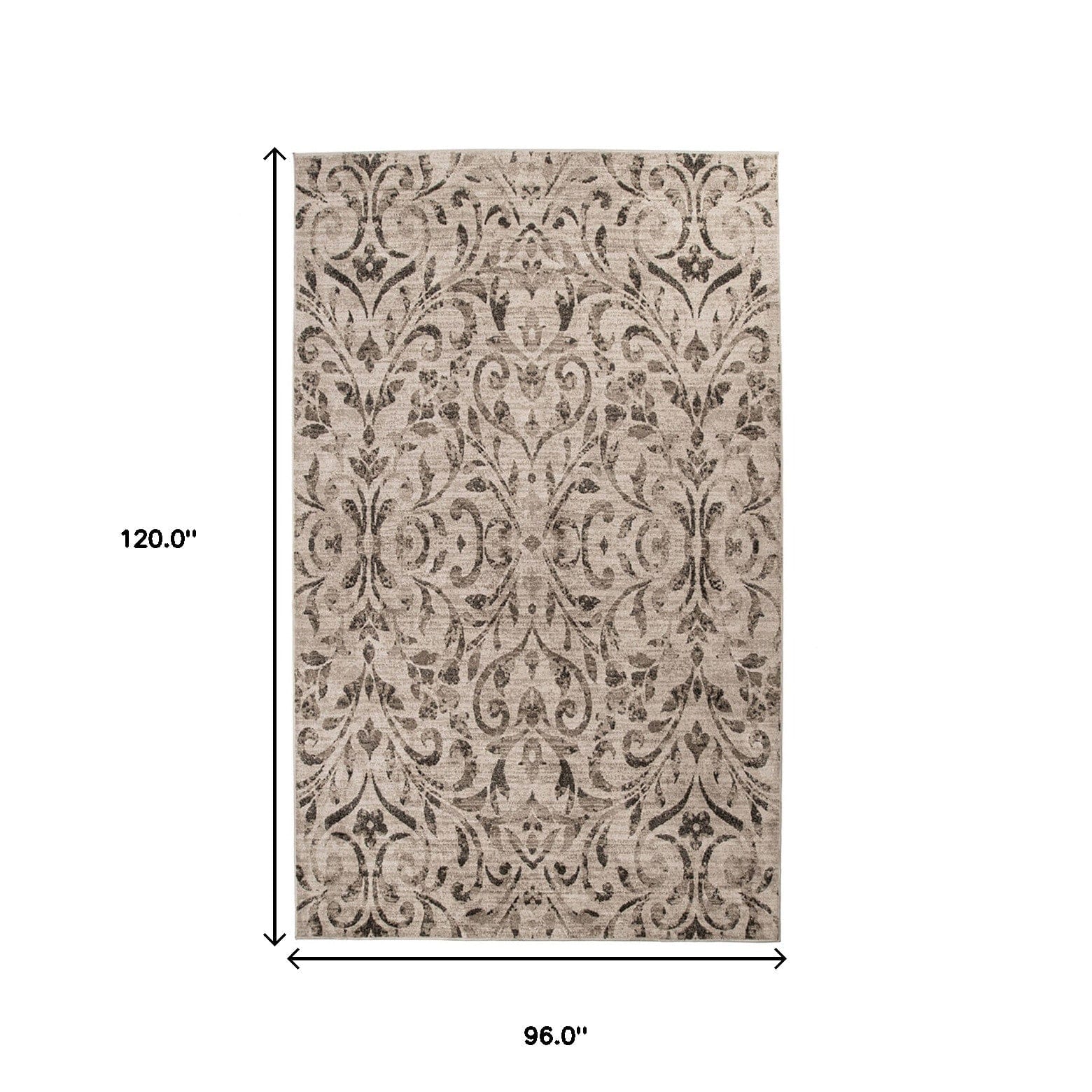 8' X 10' Bronze Floral Vines Power Loom Stain Resistant Area Rug