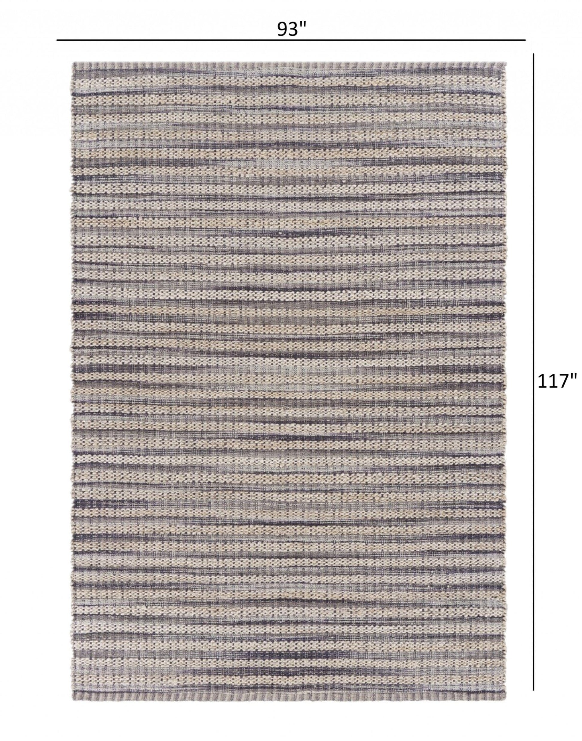 Combining classic elegance with on-trend patterns, this Brown and Gray Striped Area Rug exhibits an intriguing blend of colors and texture to transform your living space. The fusion of brown and gray stripes creates an eye-catching gradient to complement a variety of interior settings. With a blend of jute, cotton, and rayon in the making, this rug ensures enhanced durability, easy cleaning, and the ability to insulate and regulate moisture in indoor areas. The soft medium pile construction adds to the surface texture that provides a perfect balance of luxury and functionality, making it a versatile piece for your home. Place this neutral-toned area rug against a wooden or tile floor and it will add a classy edge to your interior. 93” x 117” x 0.5”