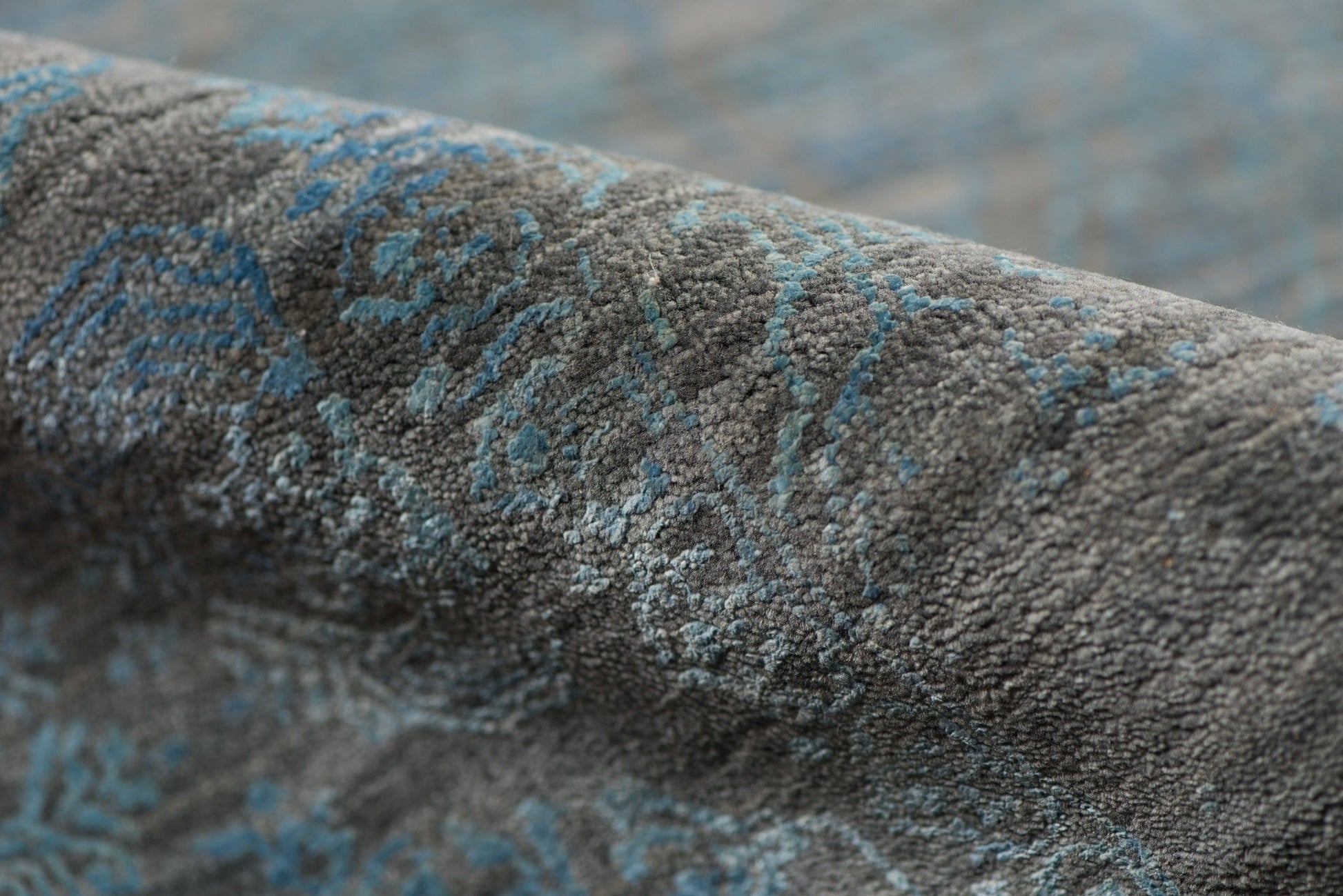 Add great coloration and comfortable texture to your space with this 8' x 10' dark gray and blue new zealand lambs wool damask hand knotted area rug with fringe. This rectangle shaped rug features a damask design in dark gray and blue to give it visual interest. A classic shape marries with good looking design for your space Crafted by skilLED artisans, this hand knotted rug is genuine and unique. No two will be exactly alike. Place this area rug against a hardwood or tile floor and it will enliven your living space with style and sophistication. 0.38" H x 96" W x 120" D