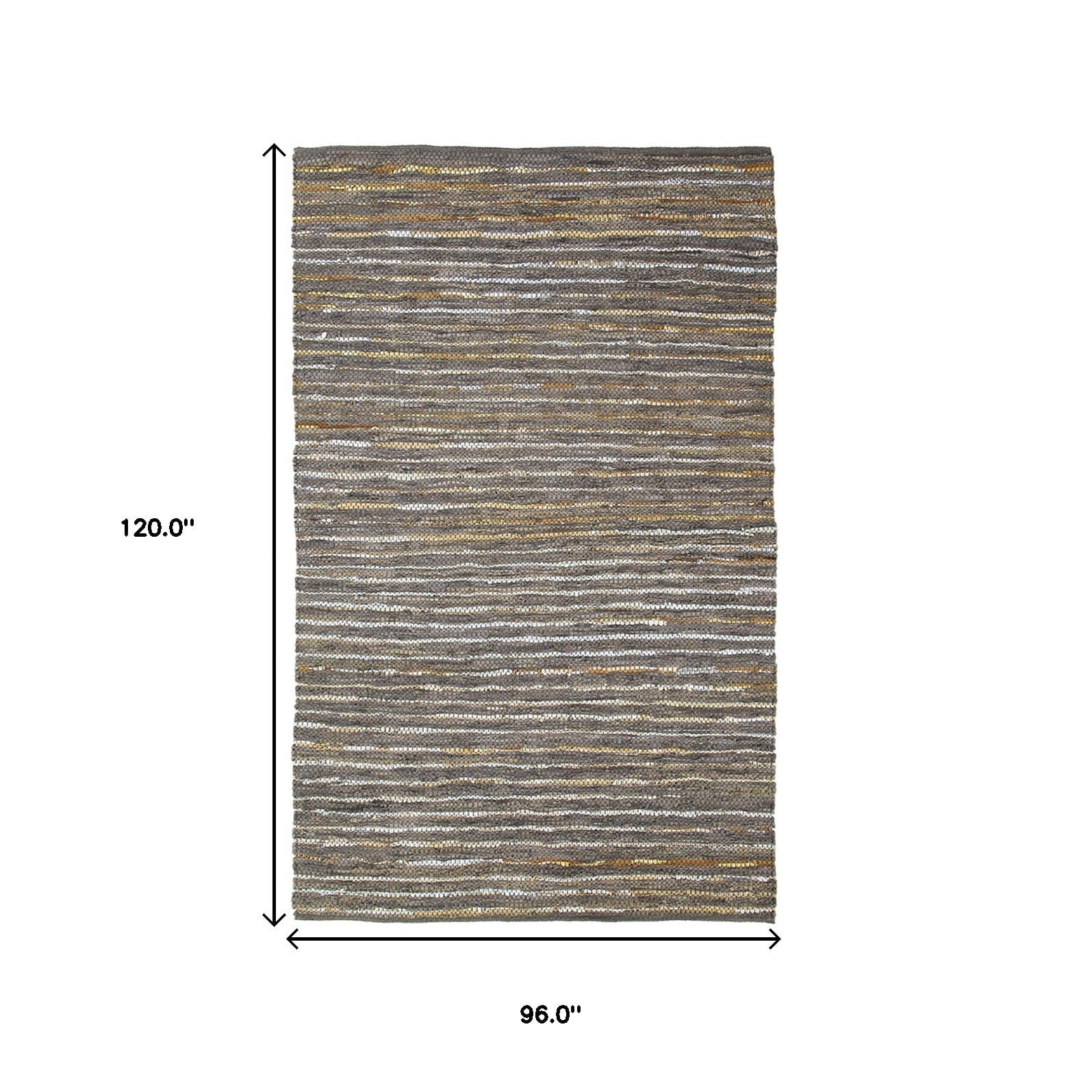 8' X 10' Fossil Striped Handmade Leather Area Rug