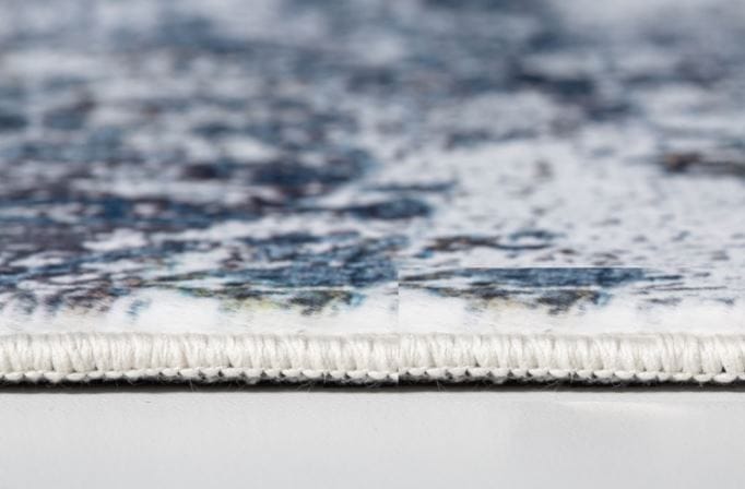 Allure the gaze of the guests with this stunning Gray Blue Abstract Galaxy Area Rug that features a blend of hues to transform your living room. The exquisite display of blue, white, and grays creating an abstract galaxy artwork is sure to make a statement in your contemporary home. With 100% polyester fiber in the construction, this rug stands out in durability and stain resistance, making it a suitable indoor accent to adorn your space. The low pile construction offers a smooth and soft surface texture that can withstand heavy foot traffic and serve well in home with kids and pets. Give your home a stylish modern edge with this cool-toned area rug in your living room or hallway space. 120” x 90” x 0.25”