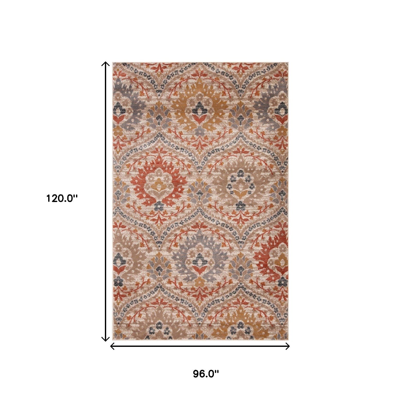 8' X 10' Ivory Orange And Gray Floral Stain Resistant Area Rug
