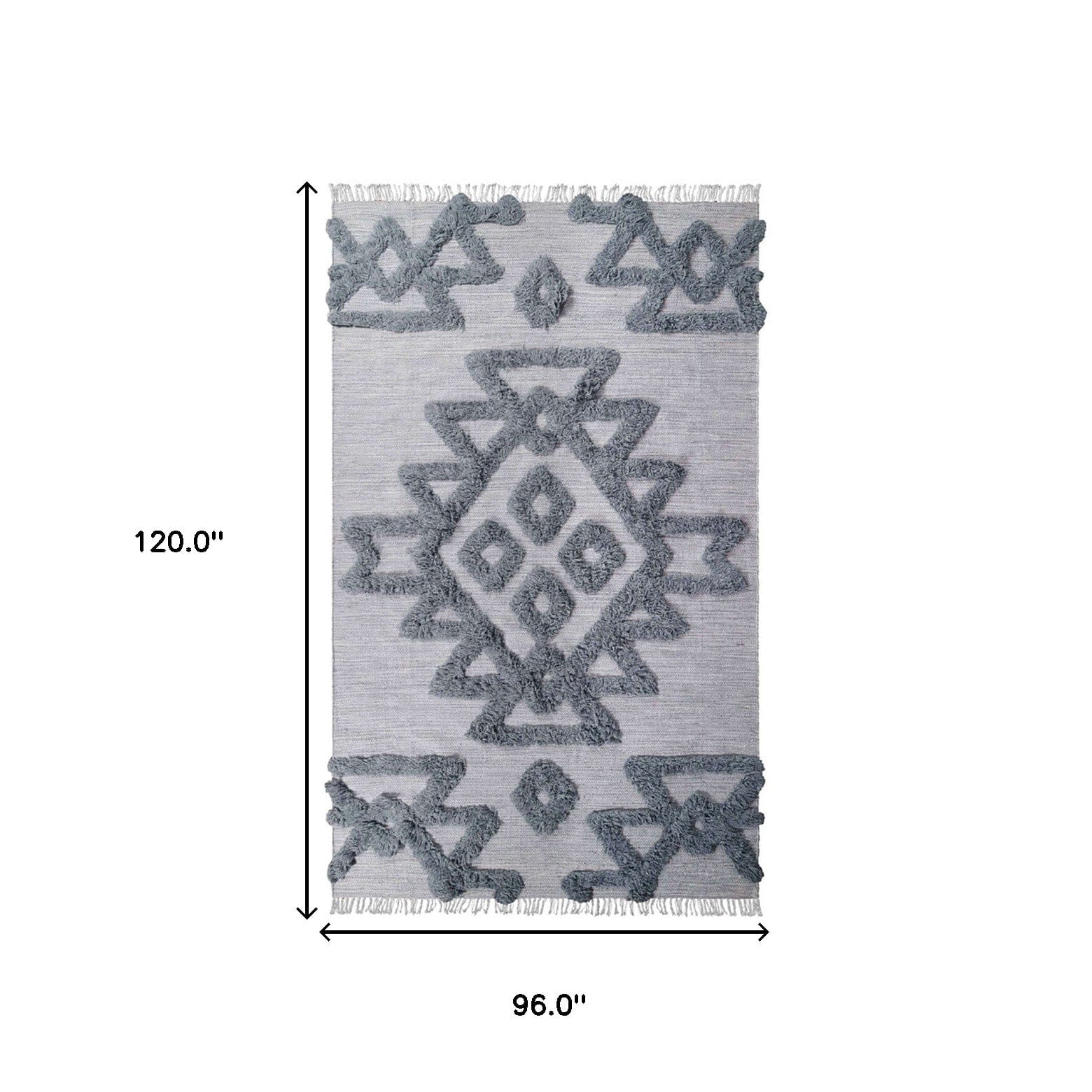 Add great coloration and comfortable texture to your space with this 8' x 10' silver and grey wool geometric power loom stain resistant area rug with fringe. This rectangle shaped rug features a geometric design in silver and grey to give it visual interest. A classic shape marries with good looking design for your space This superior Turkish rug represents the highest quality and is built to last. Ideal for spaces with kids and pets, this rug is stain resistant to help repel stains and spilled liquids. Tassel ends bring a timeless and fashionable look to your interior. Area Rugs help to give warmth and sense of home to your space. 1.38" H x 96" W x 120" D