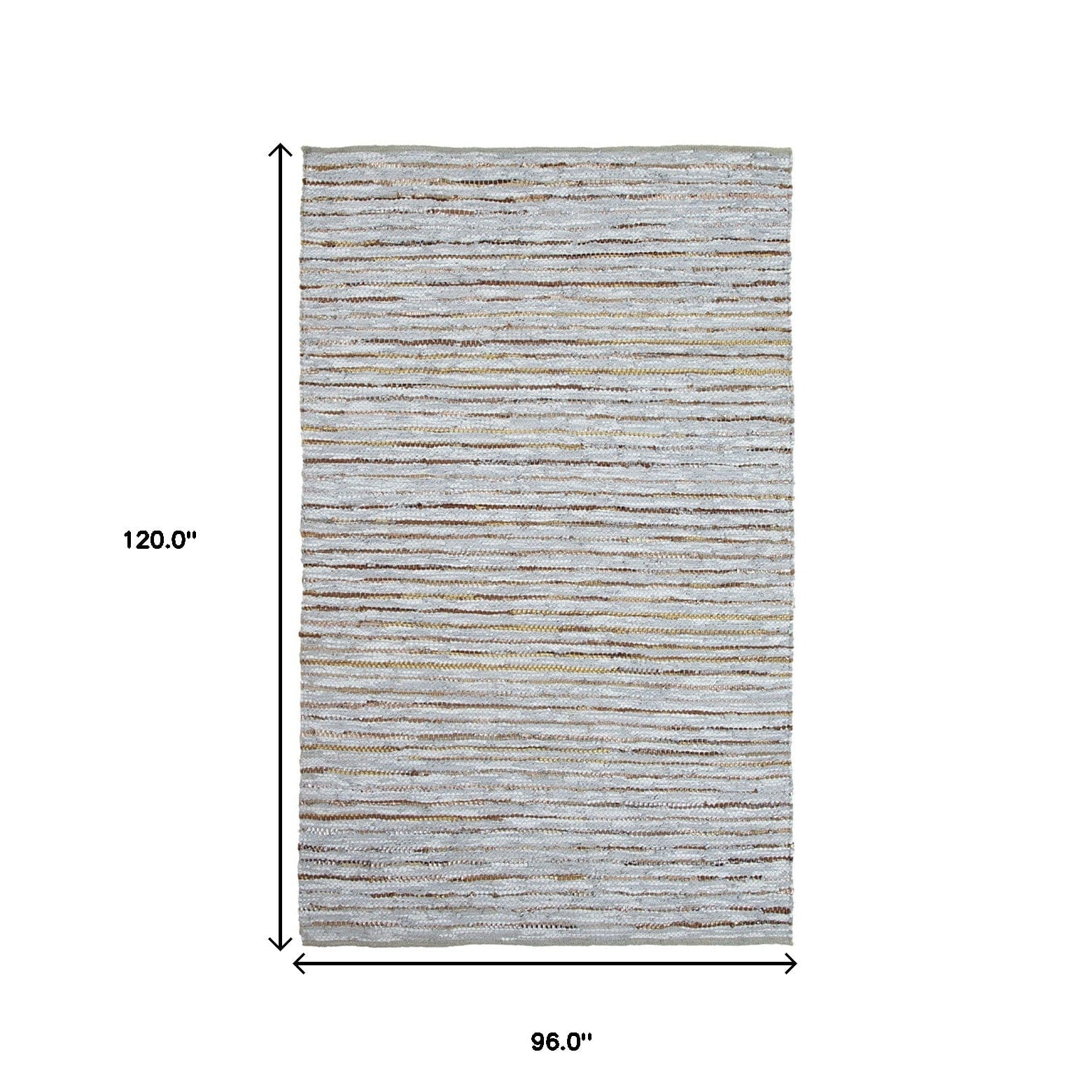 8' X 10' Smoked Grey Striped Handmade Leather Area Rug