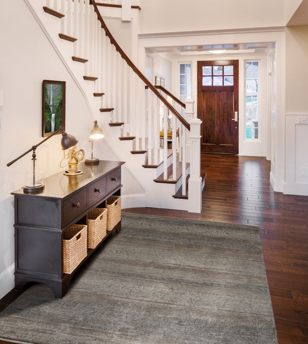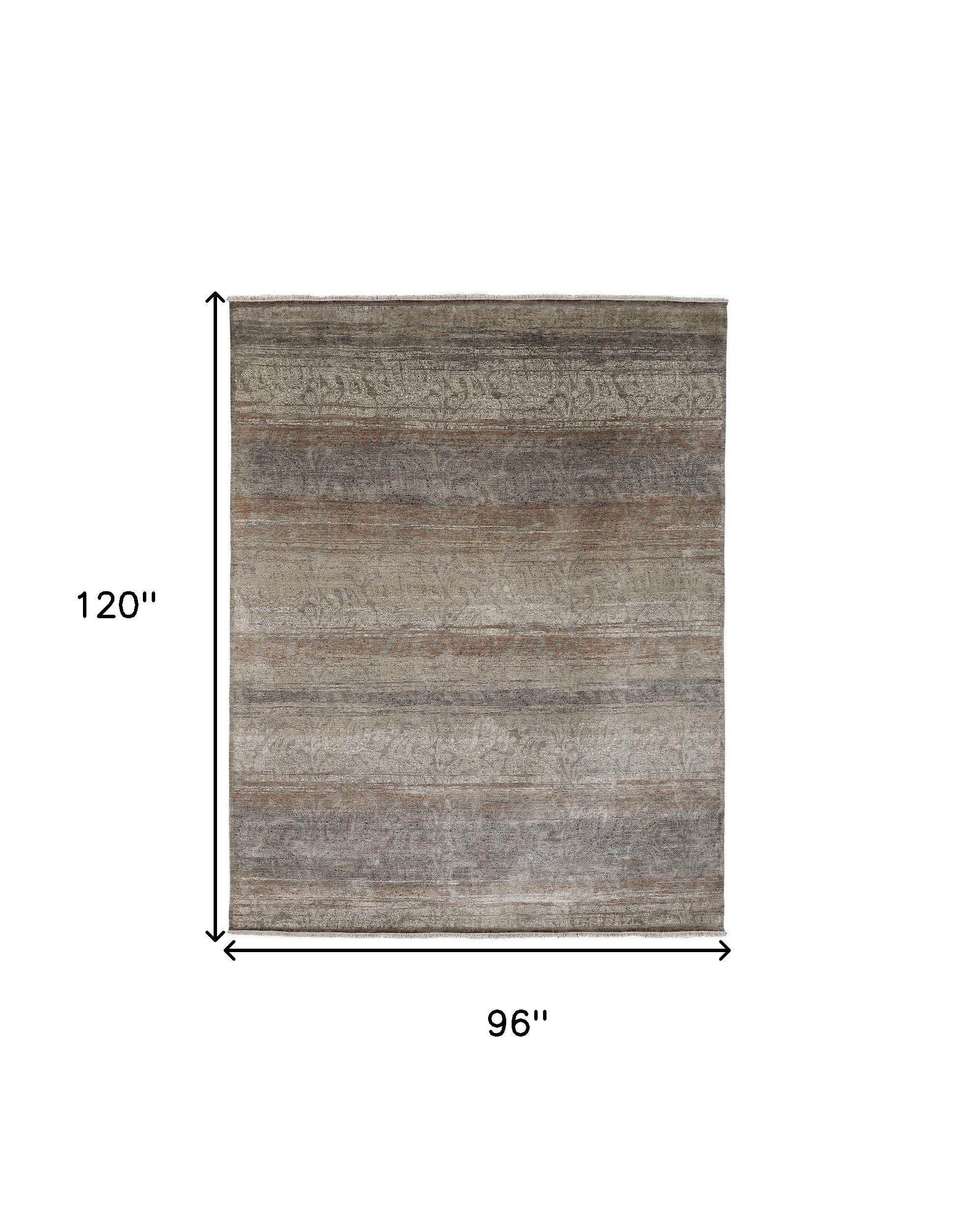 Set an inviting tone in your space with this 8' x 10' tan gold and gray paisley hand knotted distressed area rug with fringe. This rectangle shaped rug features a paisley design in tan gold and gray to give it visual interest. A classic shape marries with good looking design for your space Crafted by skilLED artisans, this hand knotted rug is genuine and unique. No two will be exactly alike. Place this area rug against a hardwood or tile floor and it will enliven your living space with style and sophistication. 0.38" H x 96" W x 120" D