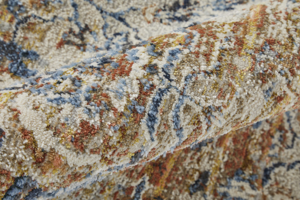 This 8' x 10' tan ivory and orange floral power loom area rug with fringe, is a great way to add warmth to a room. This rectangle shaped rug features a floral design in tan ivory and orange to give it visual interest. A classic shape marries with good looking design for your space This superior Turkish rug represents the highest quality and is built to last. Tassel ends bring a timeless and fashionable look to your interior. Place this area rug against a hardwood or tile floor and it will enliven your living space with style and sophistication. 0.39" H x 94" W x 114" D