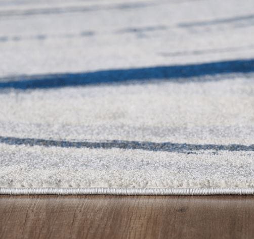 Let your house emanate an air of modern artistry with this beautiful Navy Ivory Abstract Strokes Modern Area Rug. The eye catching abstract strokes adorned with the calming shades of navy and ivory colors will breathe life into your contemporary interior decor. Flaunting the rich craftsmanship of Turkish artisans, this rug is woven using 100% heat-set polypropylene fibers for optimum durability to withstand the elements of indoor areas. Besides, the rug is stain resistant which makes it an excellent piece for home with pets and kids. The medium pile offers a luxurious surface texture for a soft and cozy underfoot. Give your living room a modern update with this stylish area rug rolled on the floor. 130" x 94" x 0.5"