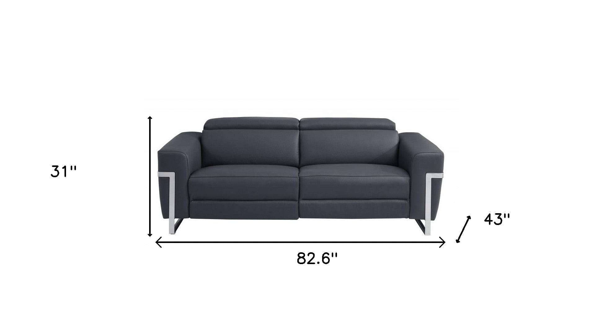 83" Dark Gray Italian Leather and Chrome Reclining Sofa