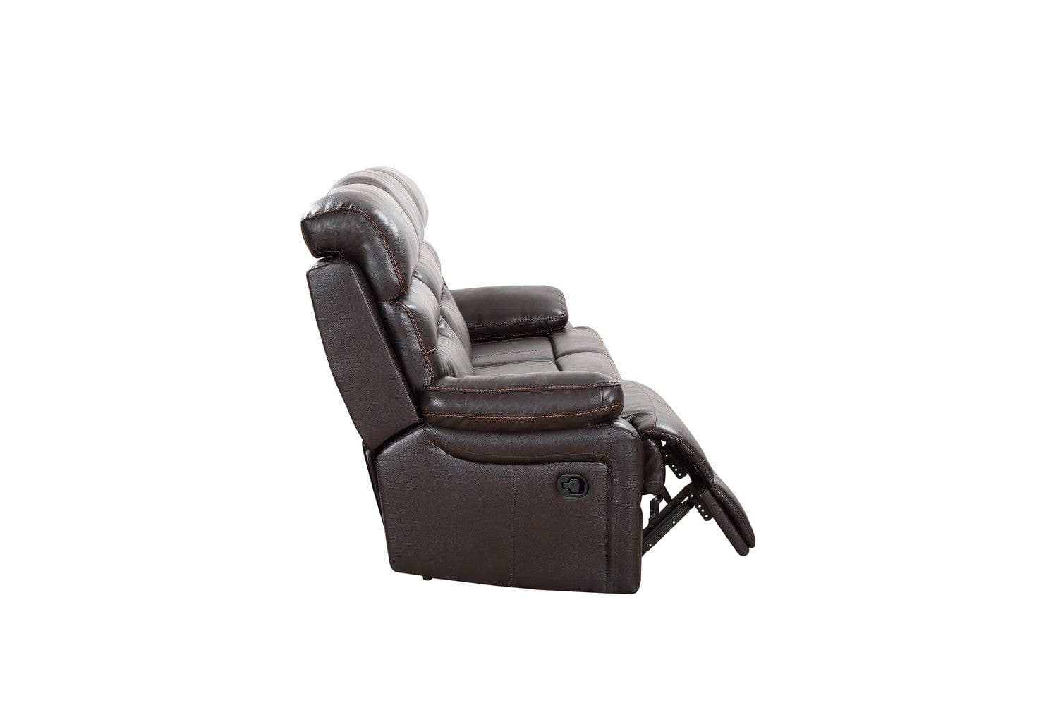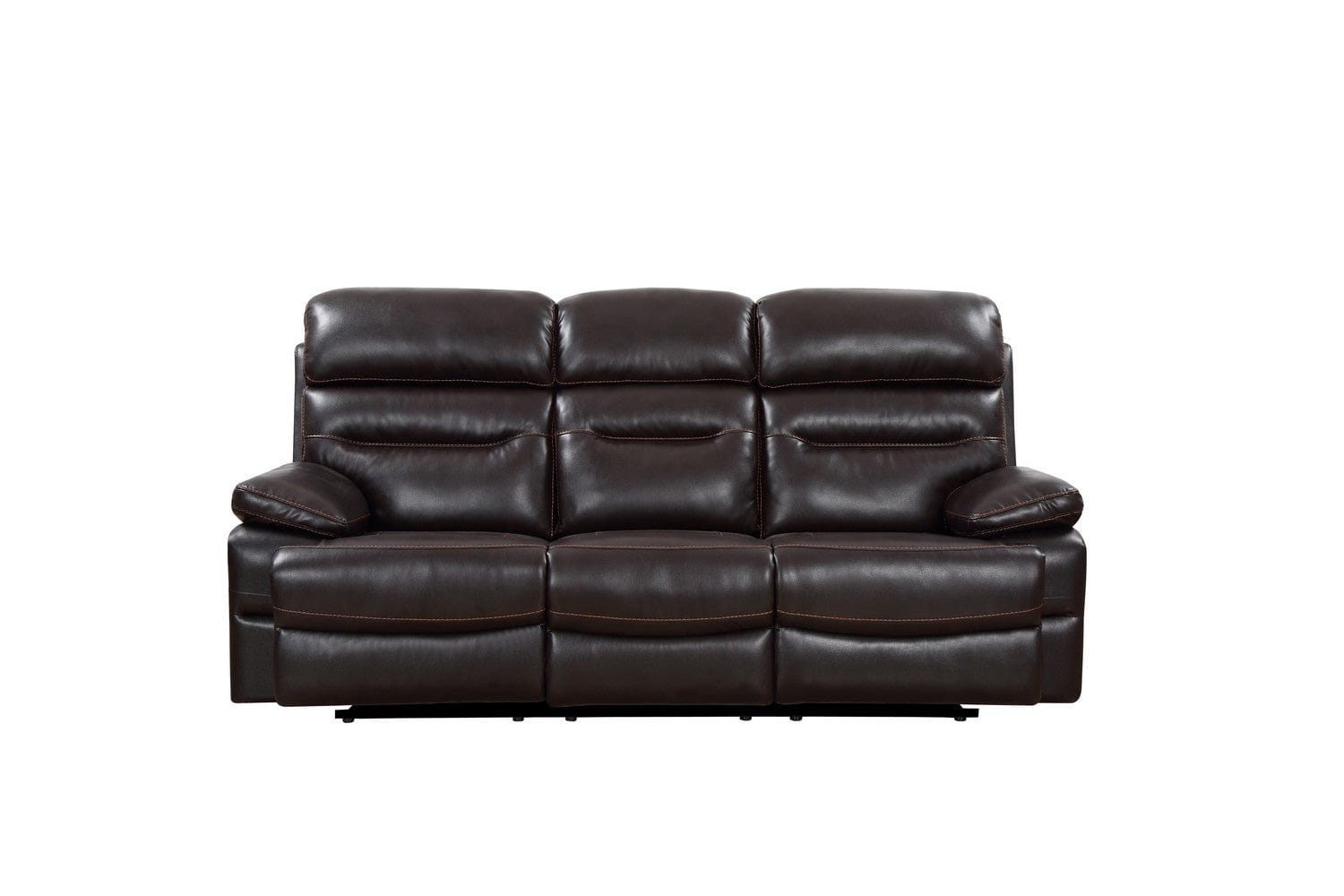 a lovely and elegant atmosphere is what your get in your living space with this chic sofa. family, friends and guests all feel very much the same about this sofa. its plush cushion, leather upholstery and beautiful brown finish leaves no room for discomfort. it will make your decor shine. dimensions: 89" x 40" x 41".