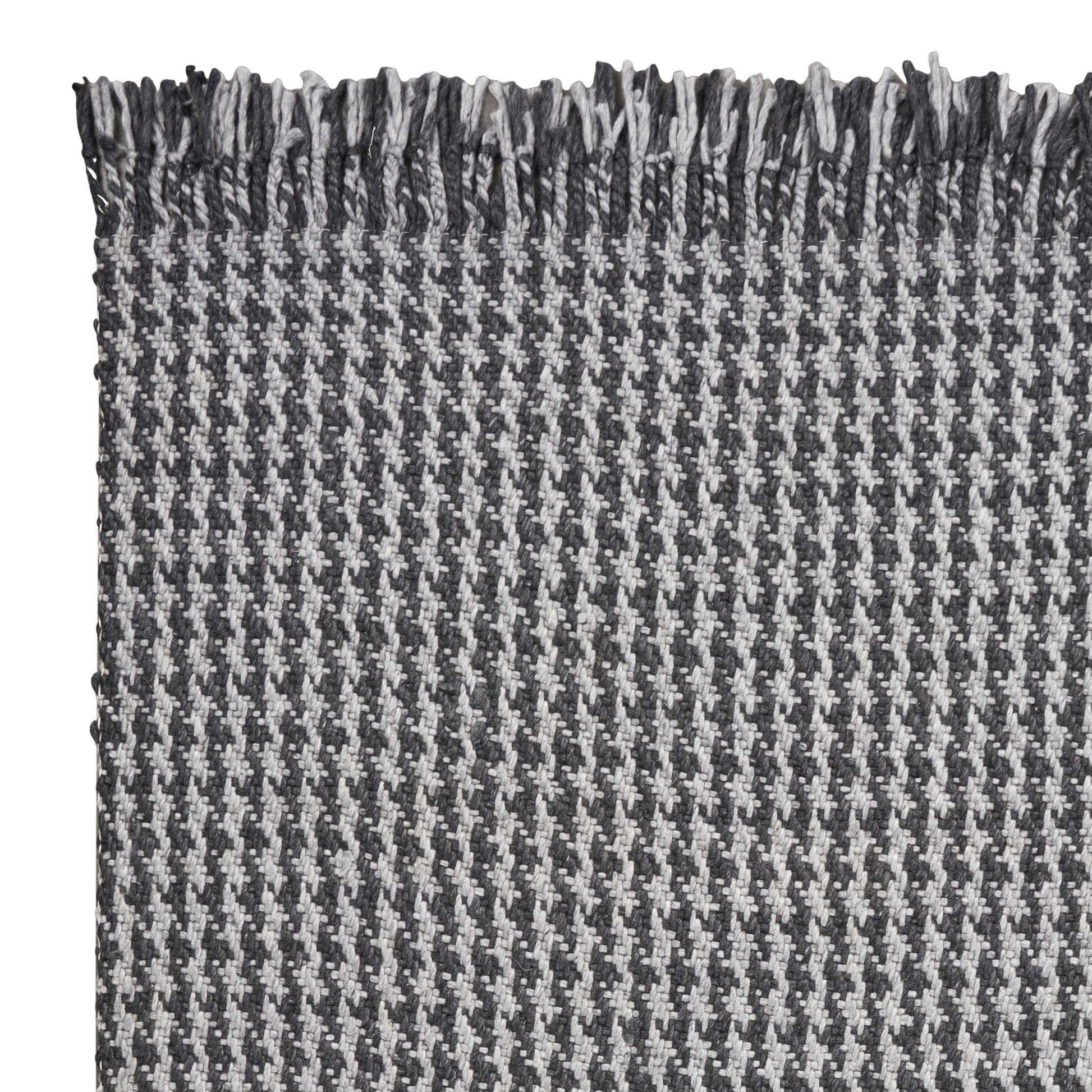 Want to turn the heads of your guests with something that will brighten your home with elegant beauty? Need something gorgeous and high quality at the same time? If so, this grey houndstooth rug is for you! This rug is a high grade piece made in India, which is hand woven from high grade wool with cotton backing. Its braided fringe will give an appealing modern feel to the look and feel of your home. As for measurements, they are 1/4" for height, 93" for width, and 117" for depth. To care for it, vacuum it regularly and spot clean any stains. Its also recommended that you have it professionally cleaned every now and then. If you need something to breathe a bit of fresh air into the atmosphere of your home, this is the rug for you.