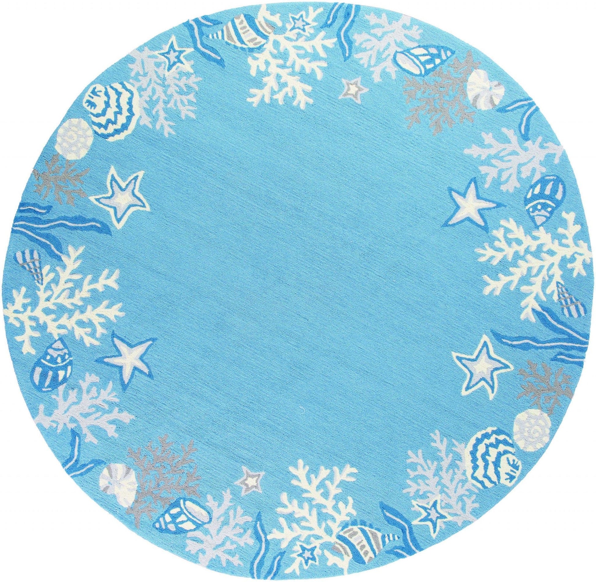 8'X10' Sea Blue Hand Hooked Bordered Coral Reef Indoor Area Rug