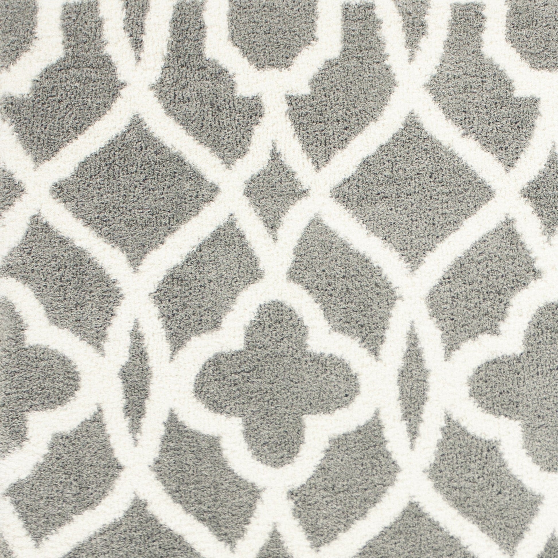 8'X11' Grey Ivory Machine Woven Ogee Indoor Shag Area Rug