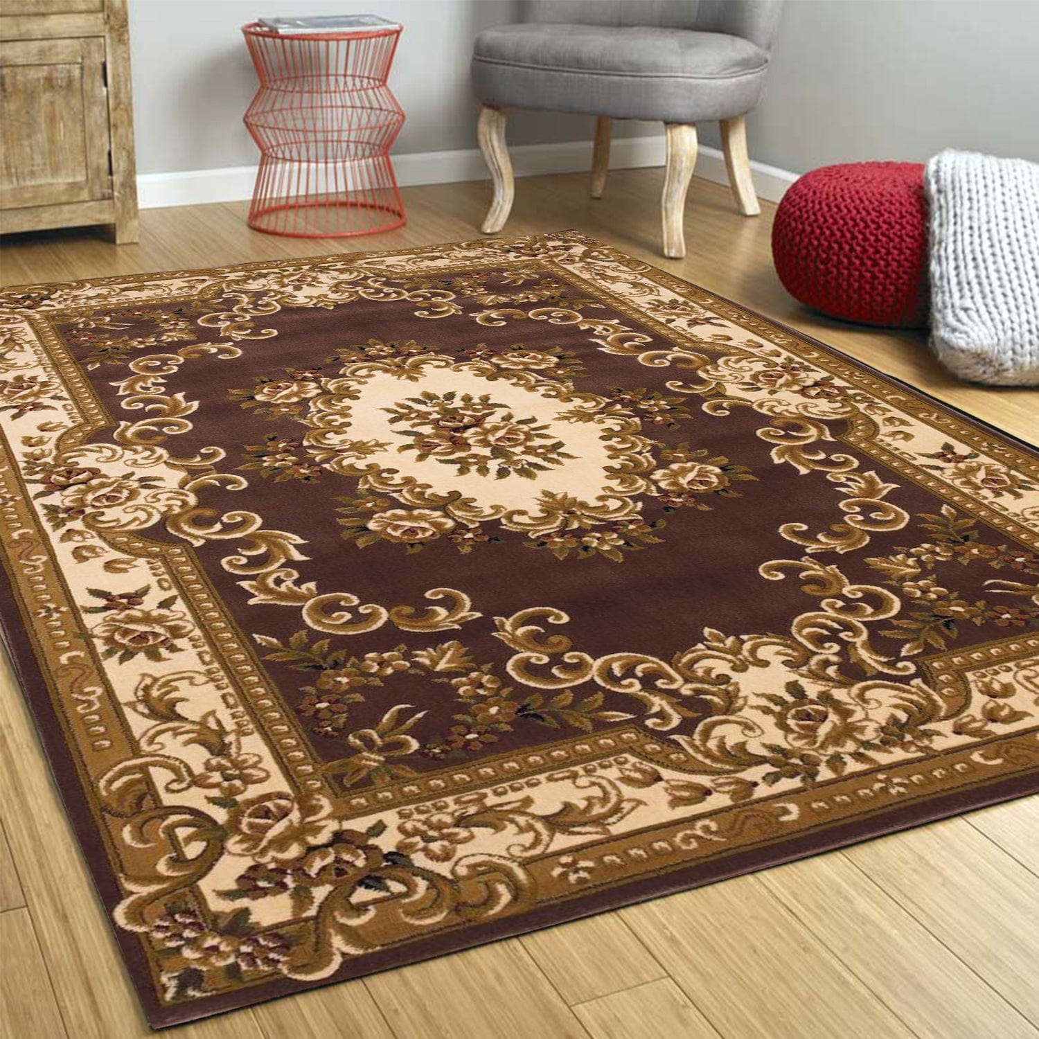 Adorn your home with this bewitching plum/ivory aubusson rug, which will turn your floor into art. Its a beguiling piece, which will certainly spruce up the ambiance of your home and get rid of monotony. This rug is a hard wearing piece machine-woven in China of 100% heat-set polypropylene and hand-carved with specific attention to detail. Its beautiful blend of yesterday and today will give an appealing modern feel to the look and feel of your home. As for measurements, they are 1/2" for height, 91" for width, and 130" for depth. To care for it, vacuum it regularly and spot clean any stains. Its also recommended that you have it professionally cleaned occasionally. If you want a beautiful and useful rug that can fit in well with any interior, this is the one for you.