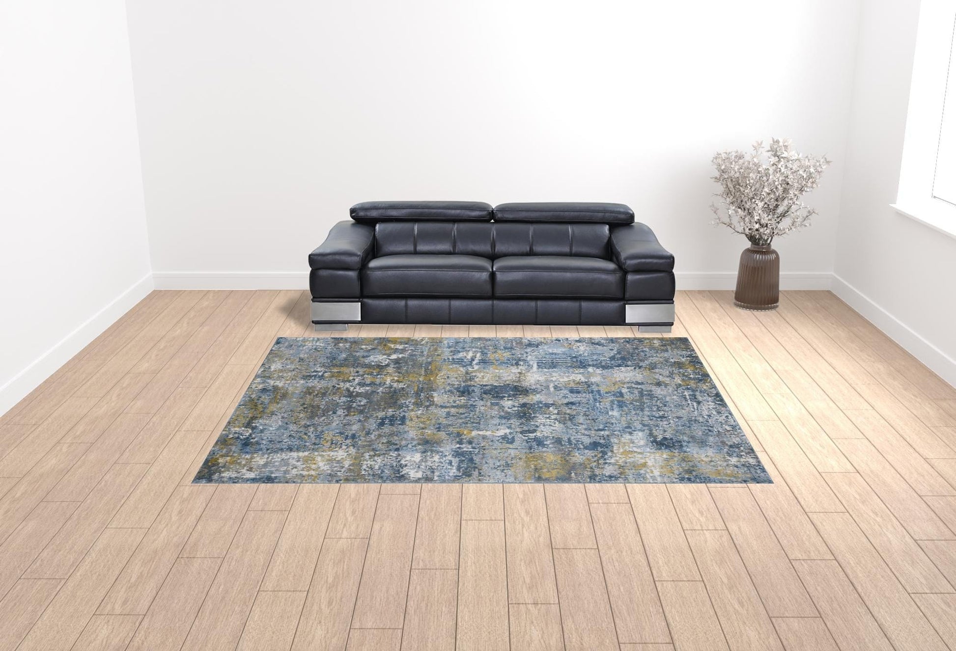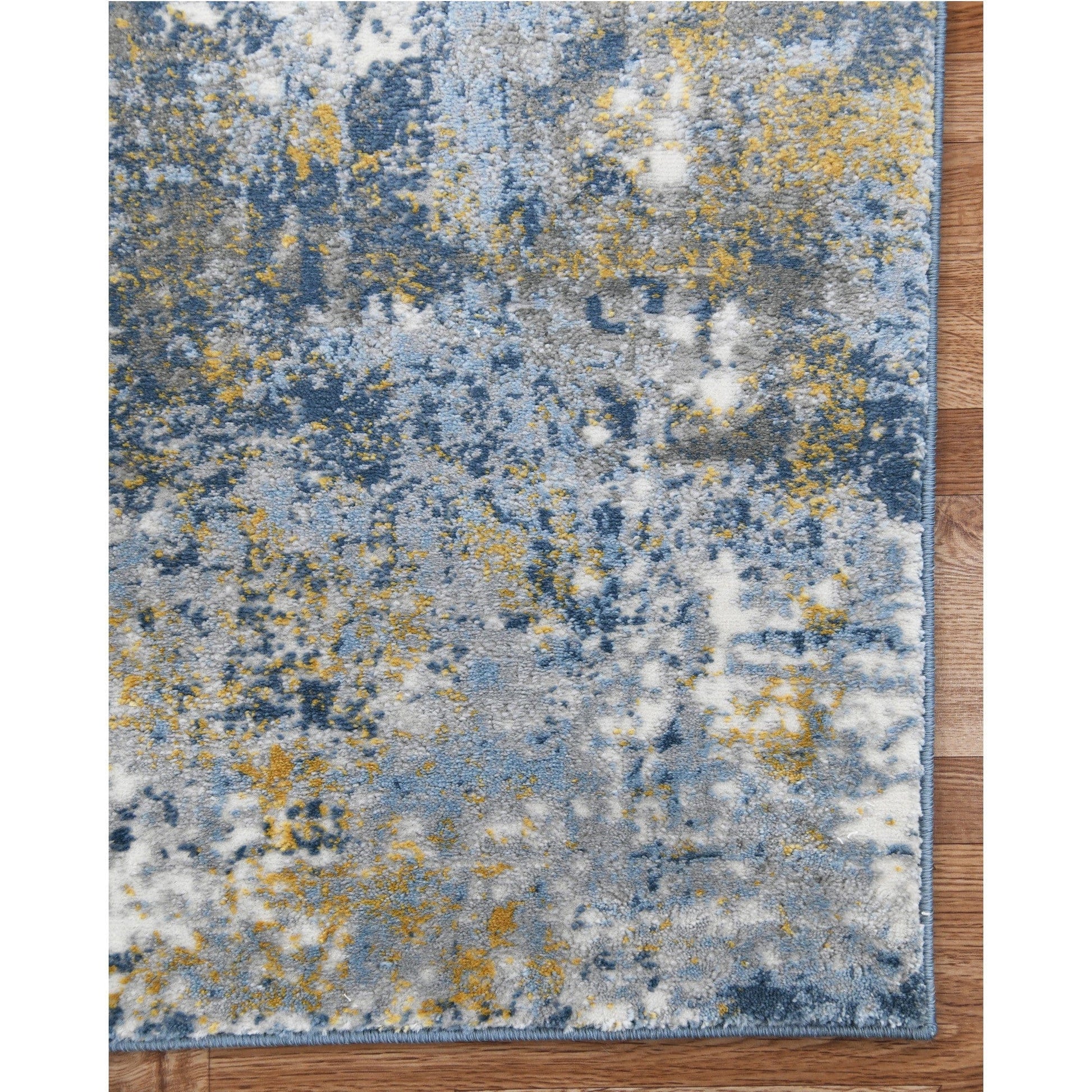 Add some artistry to your room with this 9' x 12' gold ivory and blue abstract area rug. This rectangle shaped rug features a abstract design in gold ivory and blue to give it visual interest. A classic shape marries with good looking design for your space Area Rugs help to give warmth and sense of home to your space. 0.4" H x 146" W x 110" D