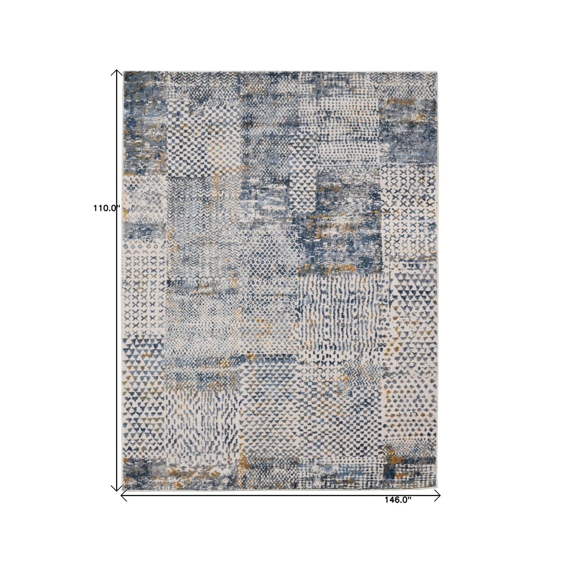 9' X 12' Ivory Blue And Gold Abstract Power Loom Area Rug