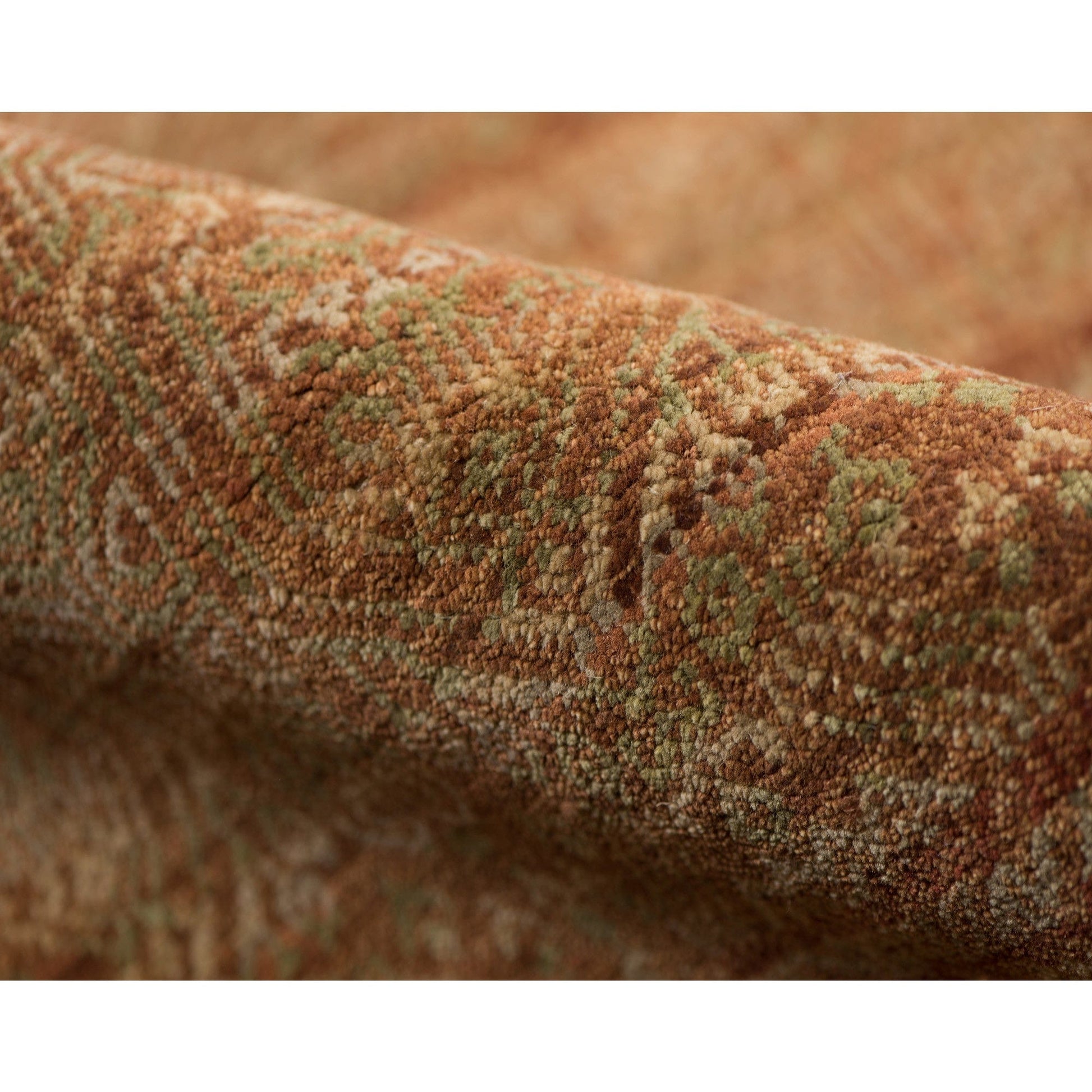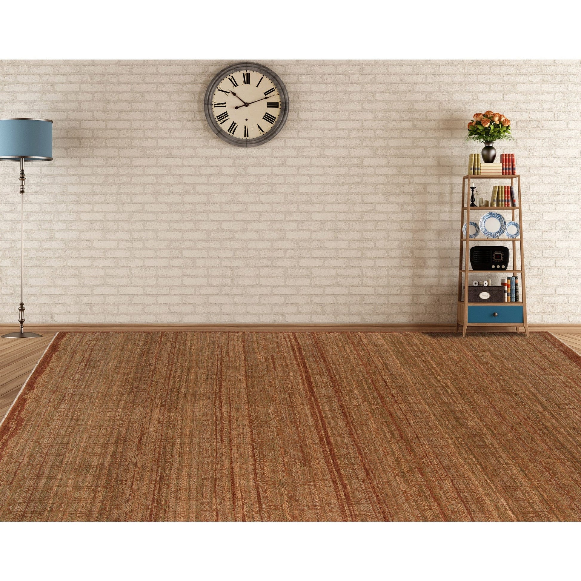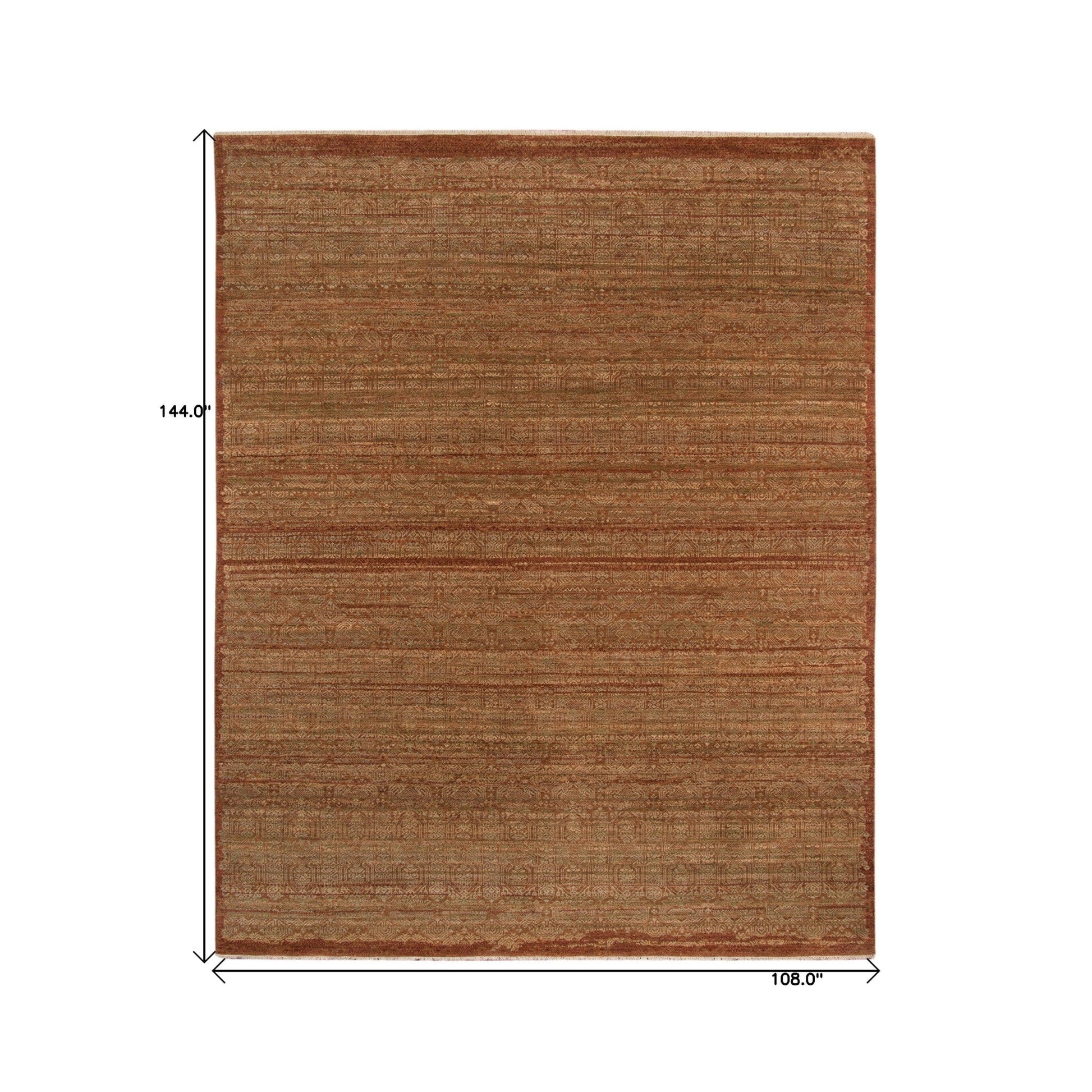 Set an inviting tone in your space with this 9' x 12' orange rust New Zealand lambs wool hand knotted area rug with fringe. This rectangle shaped rug features a geometric design in orange rust to give it visual interest. A classic shape marries with good looking design for your space. Tassel ends bring a timeless and fashionable look to your interior. Hand-Crafted by skilled artisans, this hand knotted rug is genuine and unique. No two will be exactly alike. Area Rugs help to give warmth and sense of home to your space. 0.38" H x 108" W x 144" D