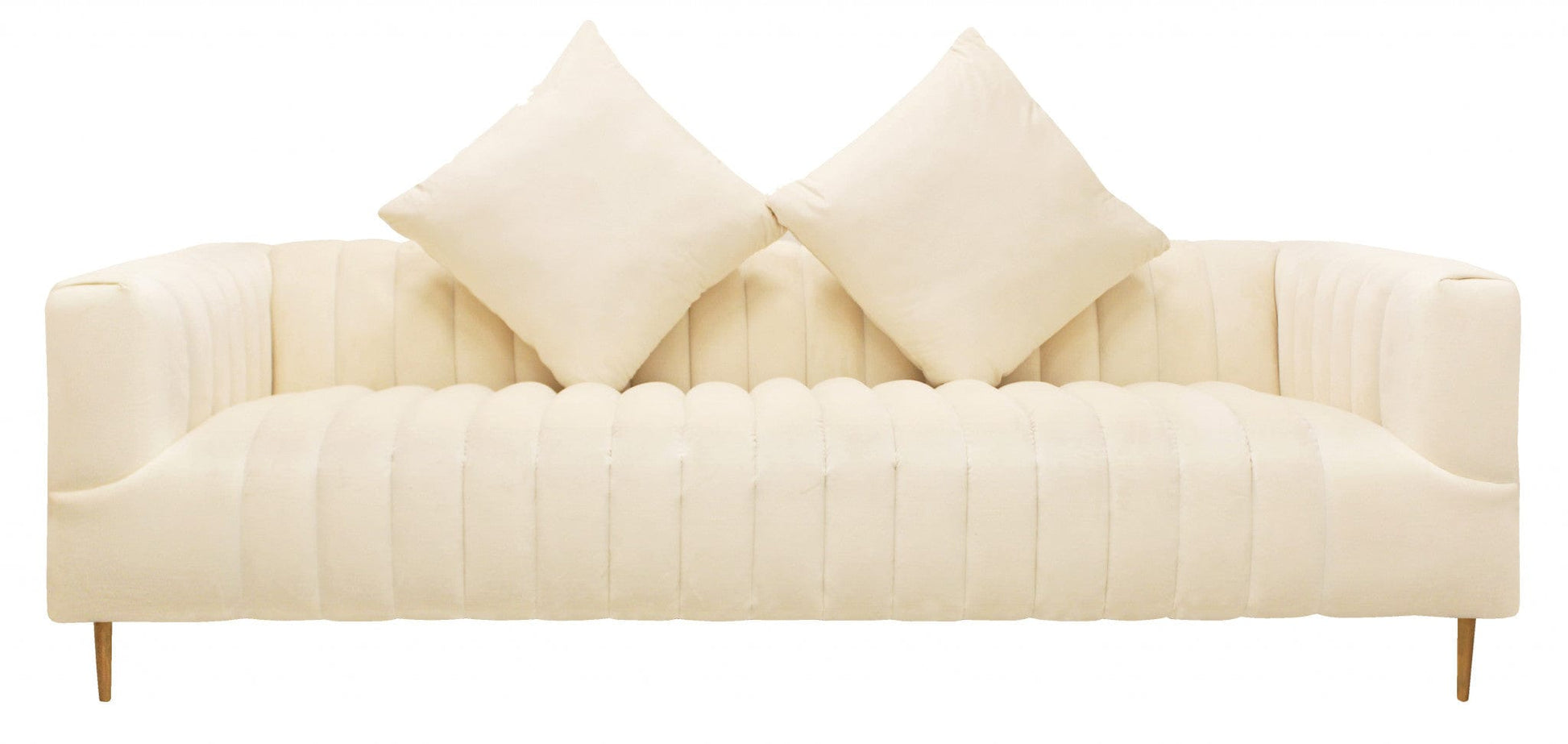 90" Ivory Channeled Velvet and Gold Standard Sofa