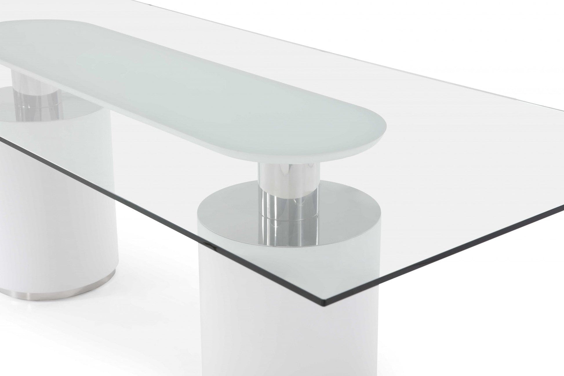 94 X 39 X 30 White Glass Stainless Steel Dining Table