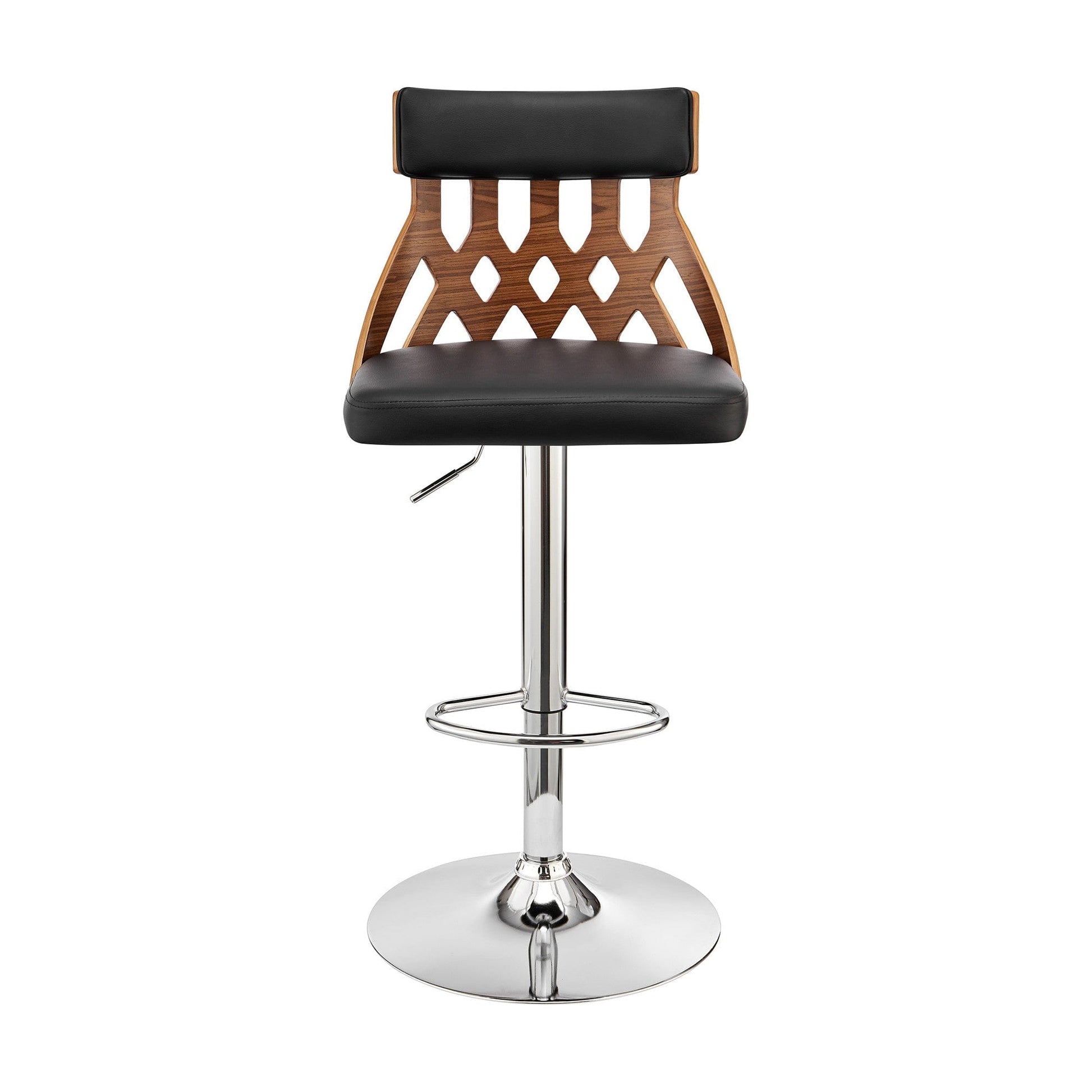 Adjustable Black Faux Leather and Walnut Lattice Bar Stool