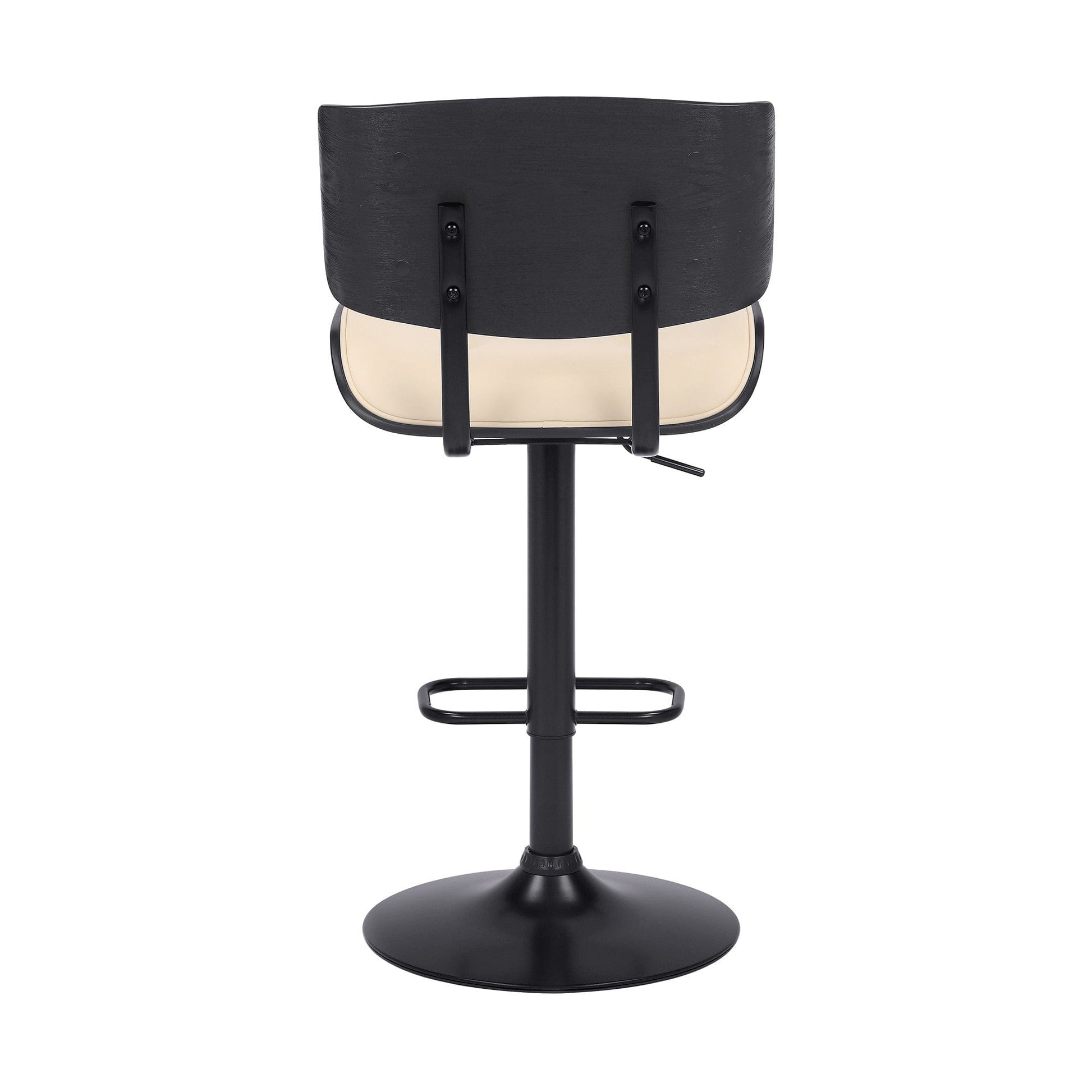 Adjustable Cream Tufted Faux Leather and Black Wood Swivel Barstool.