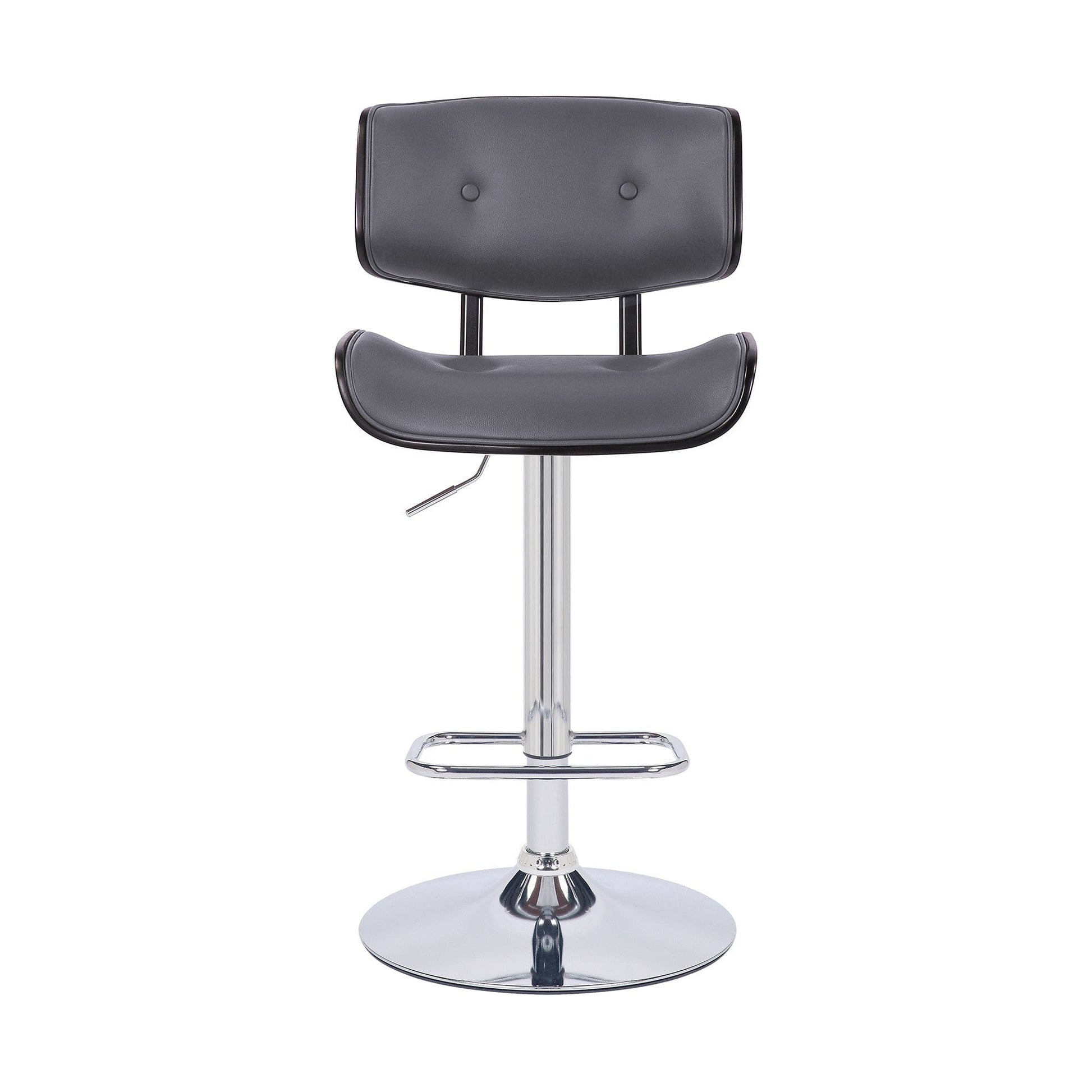 Adjustable Gray Tufted Faux Leather Black and Chrome Swivel Barstool.