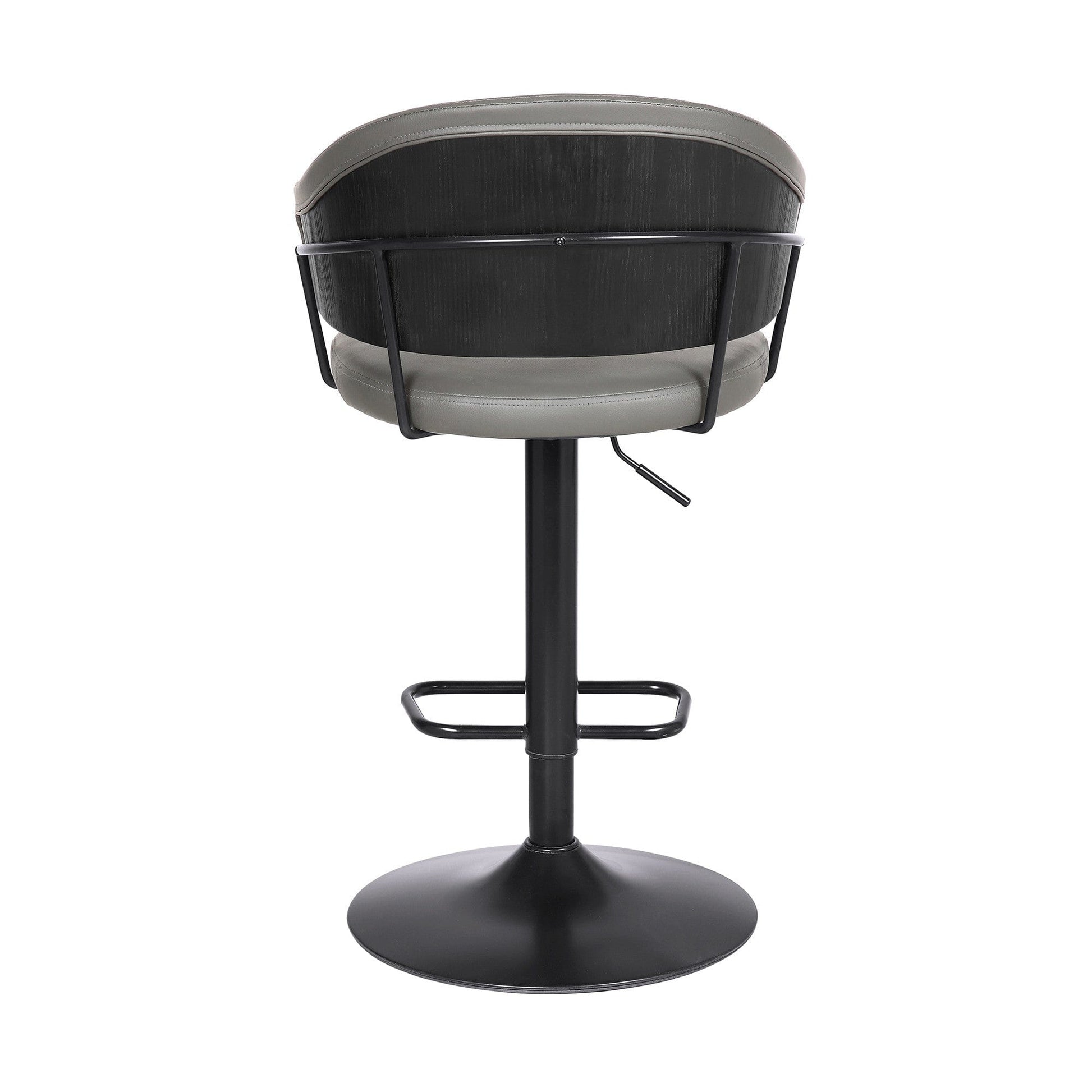 Adjustable Grey Faux Leather Black Wood and Metal Bar Stool